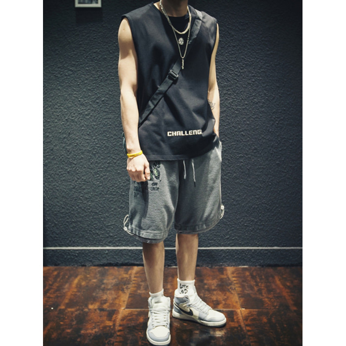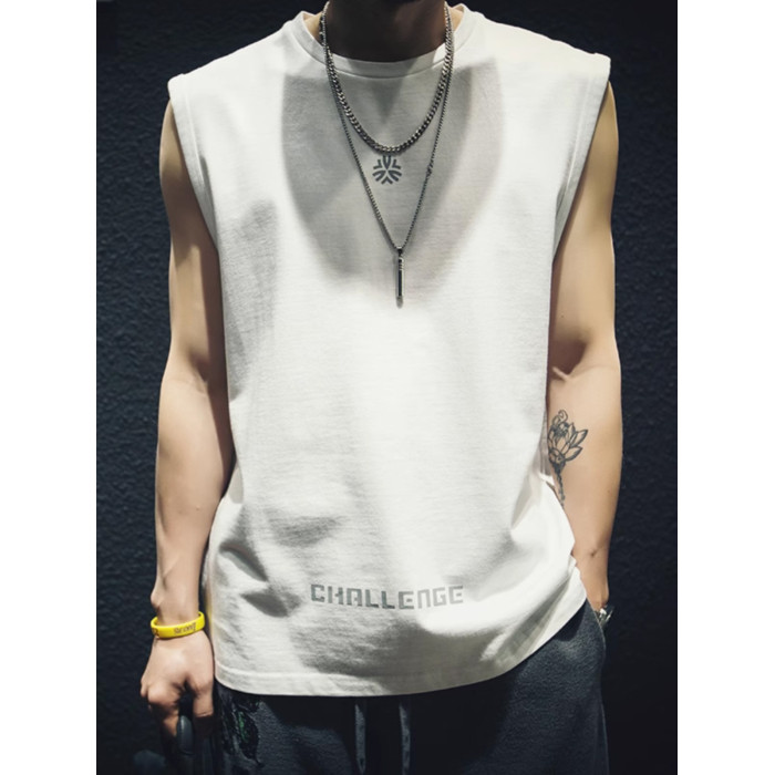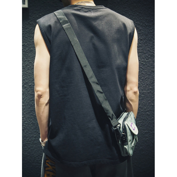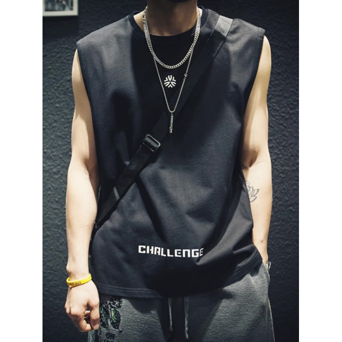 倉石一樹潮牌運動休閒背心男士夏季寬松純棉健身訓練印花無袖T恤