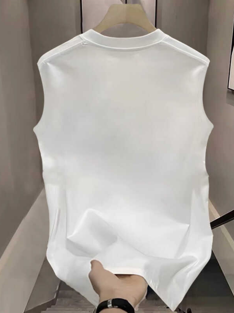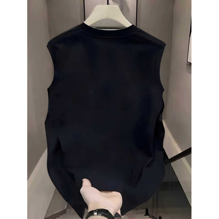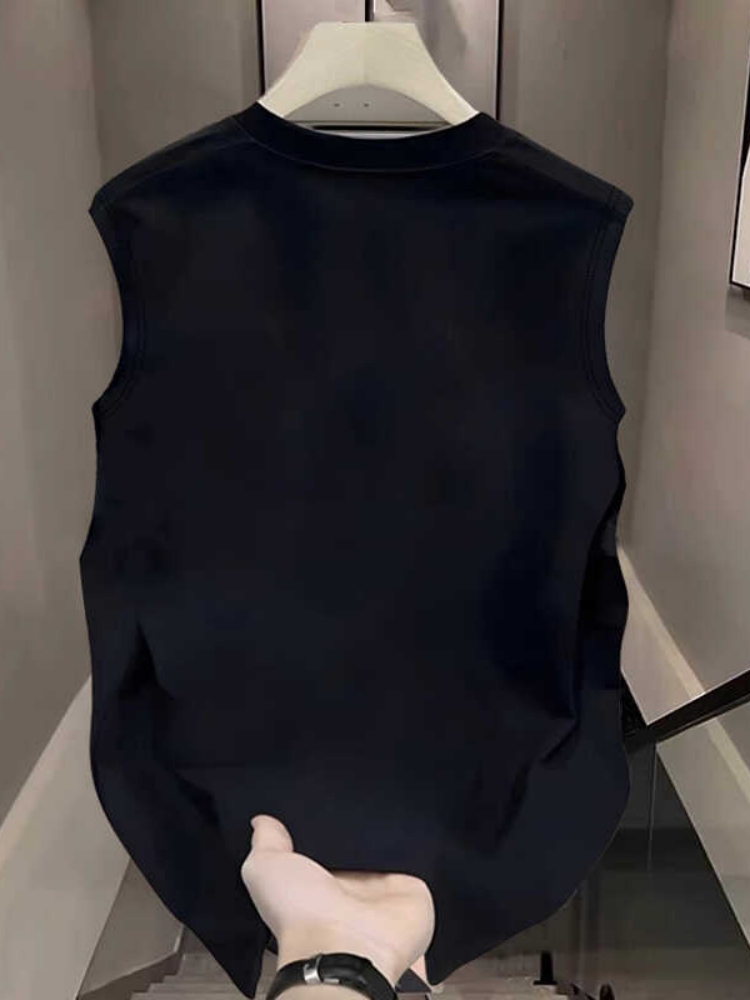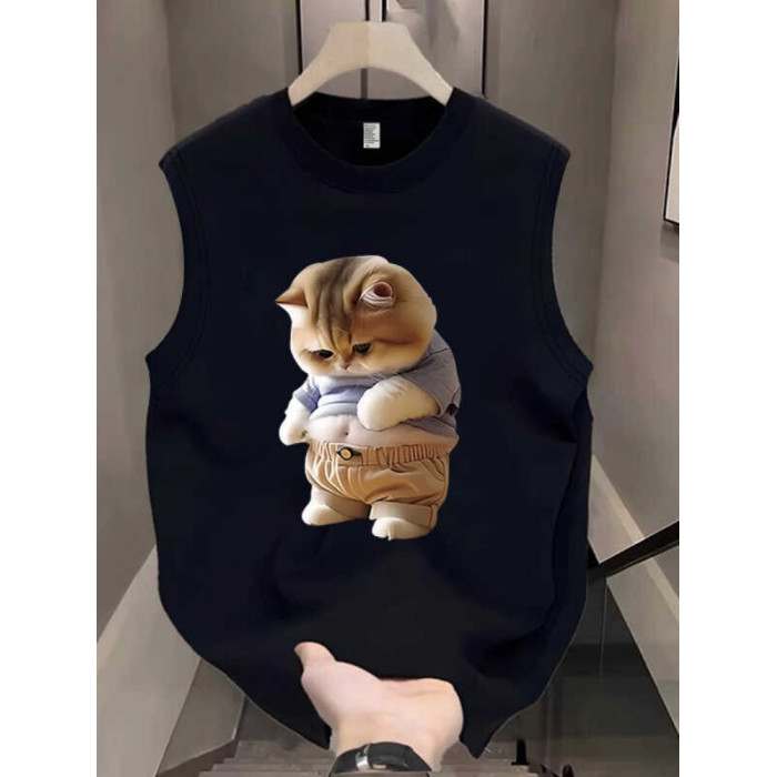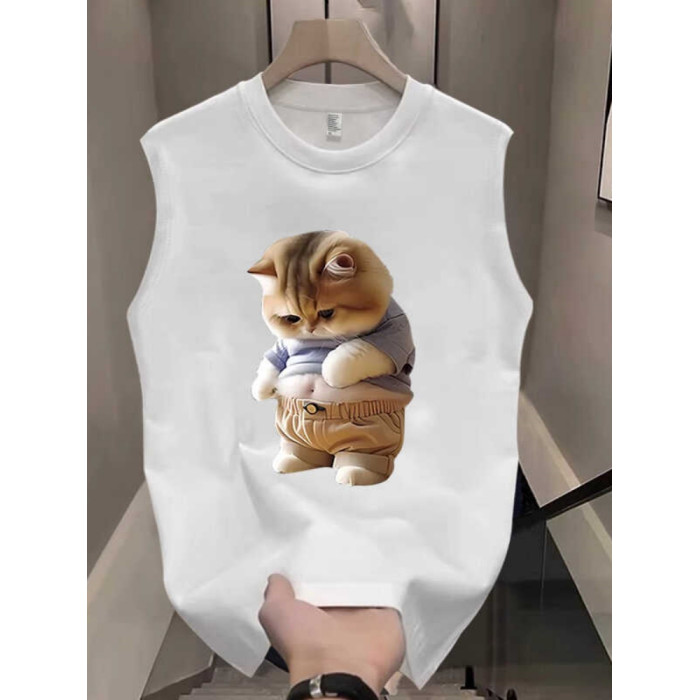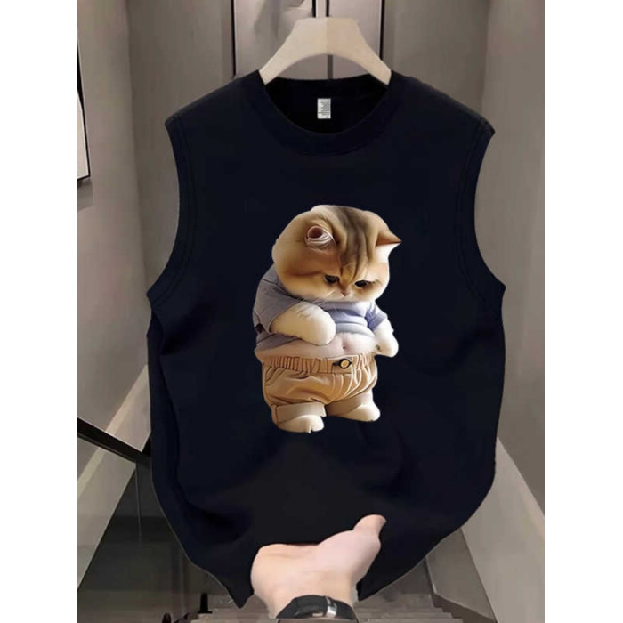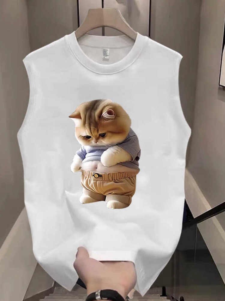 美式痞帥純棉無袖T恤男款夏季潮牌卡通貓咪印花街頭寬松背心汗衫