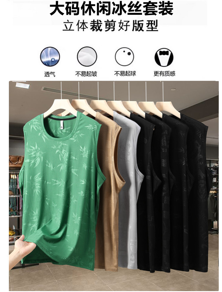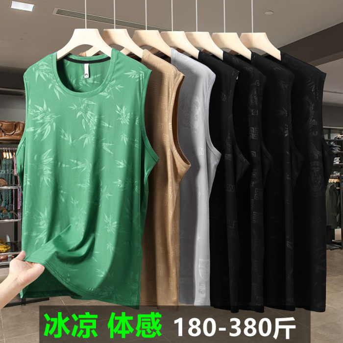 380斤夏季加肥加大碼冰絲運動背心寬松無袖T恤男跑步健身速乾坎肩