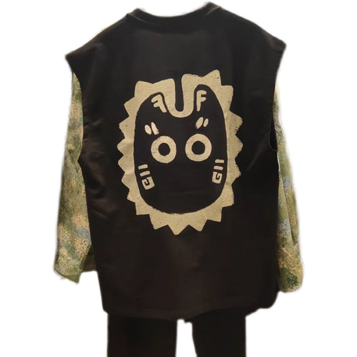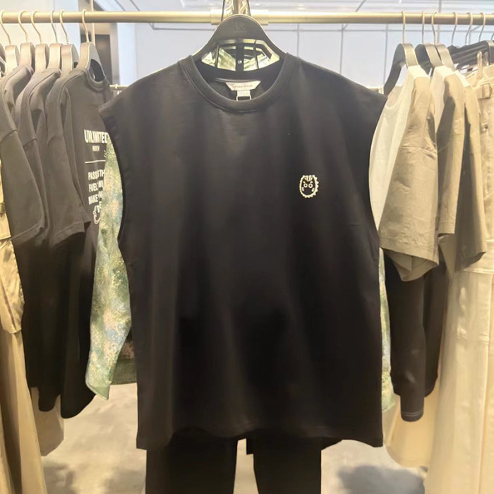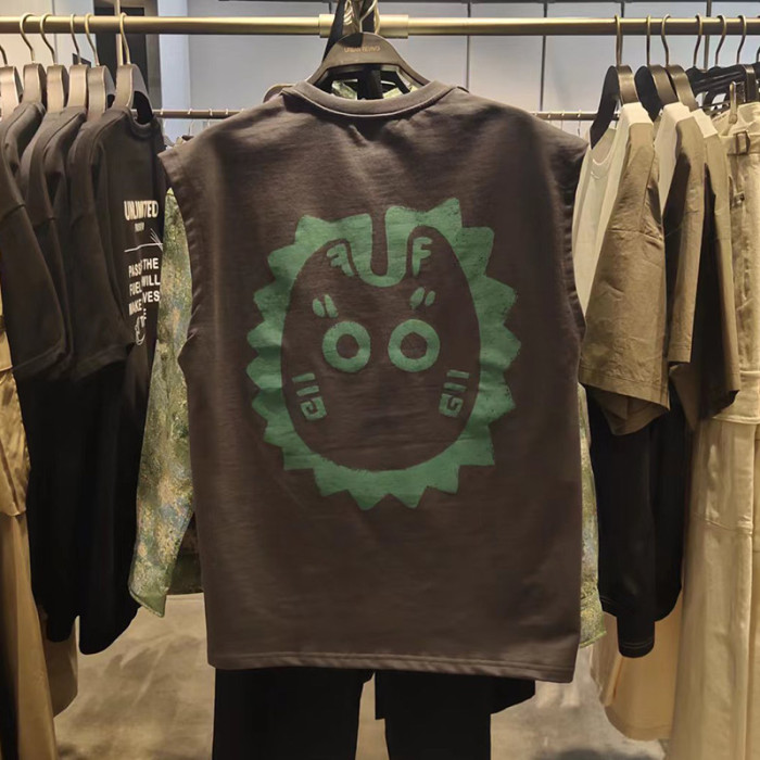 潮2024夏季新款男裝時尚休閒百搭做舊印花寬松圓領背心ML432030