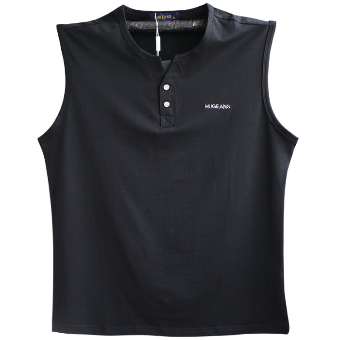 高級純棉男士夏季打底坎肩無袖t恤汗透氣v領運動寬松寬肩純色背心