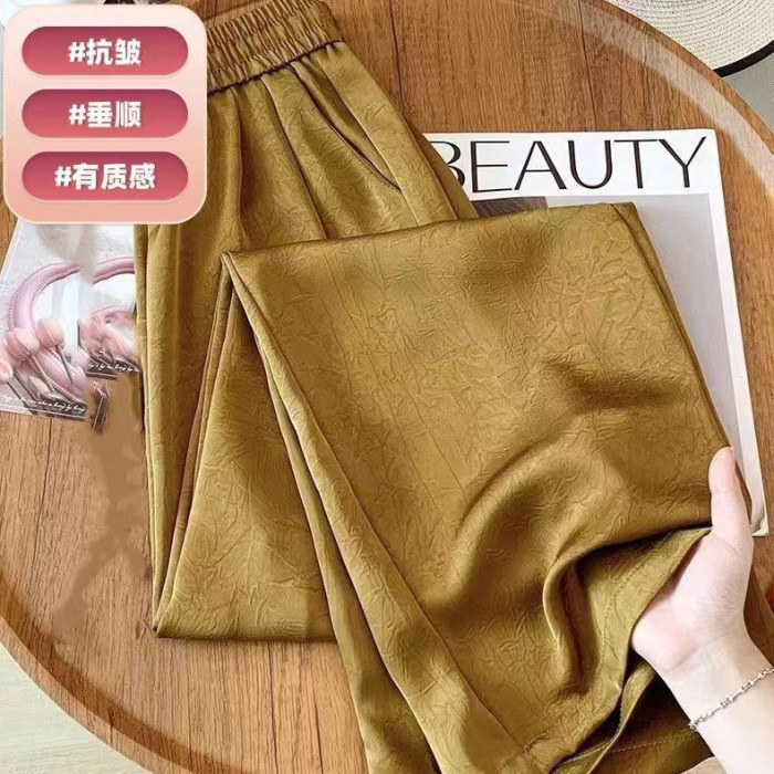 國風桑洛絲濶腿褲女2025夏季新款薄款涼涼褲顯瘦印花桑洛絲直筒褲