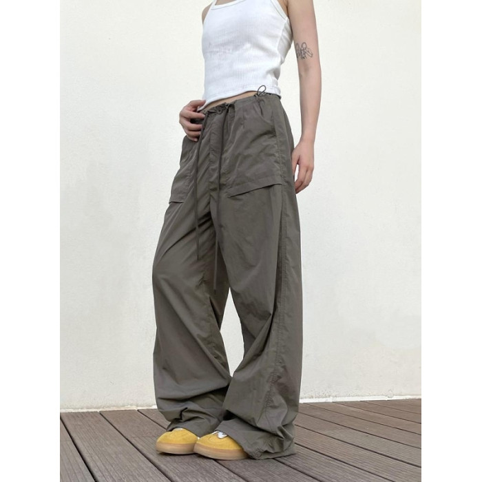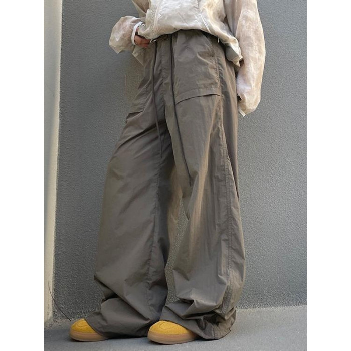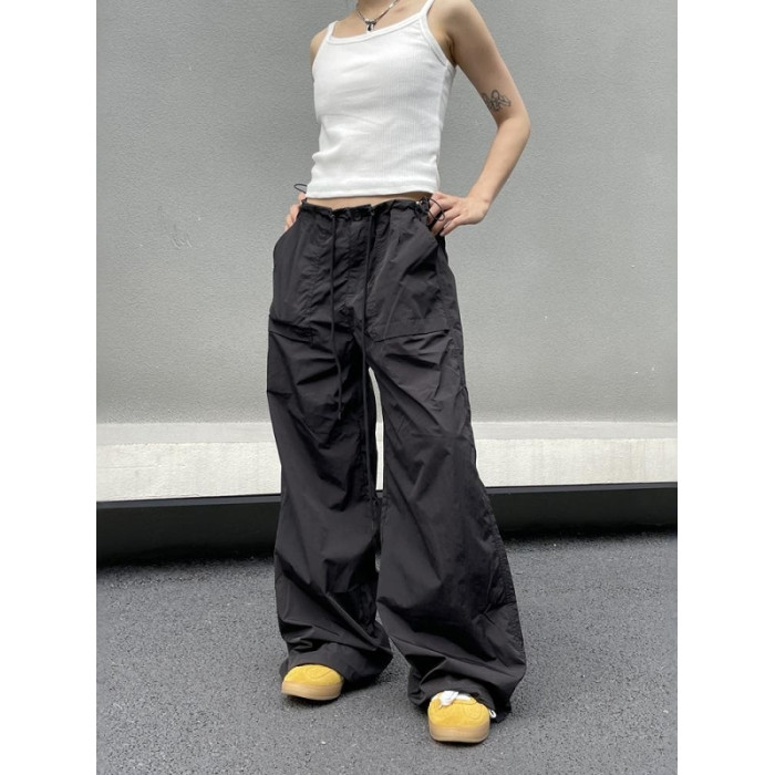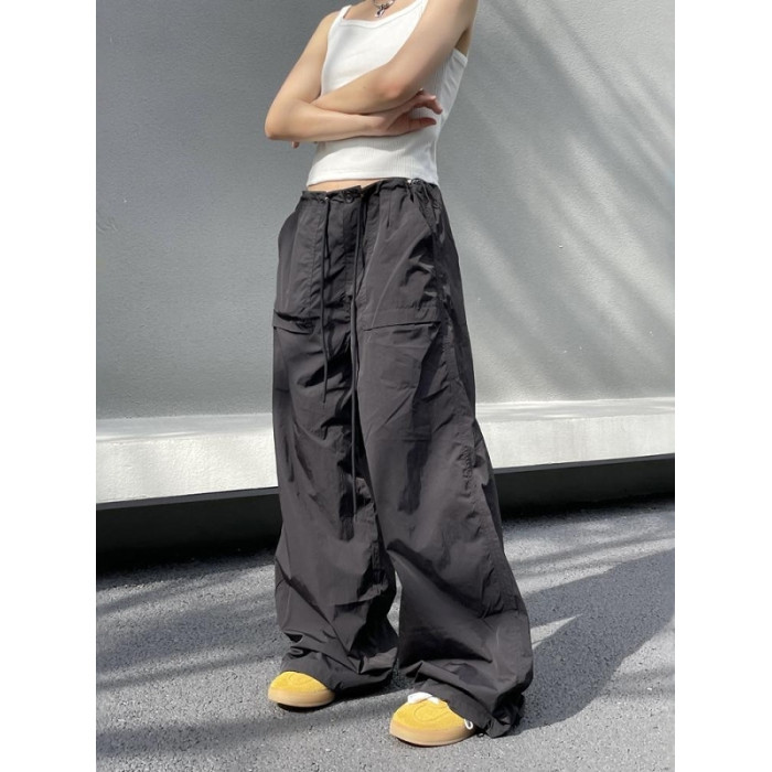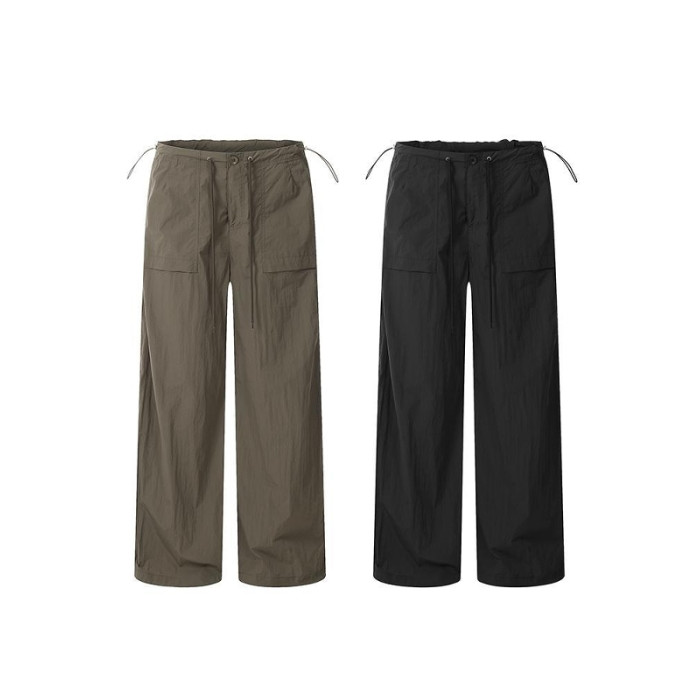 美式復古爵士舞速乾繖兵褲男女夏季寬松直筒抽繩薄款濶腿褲長褲
