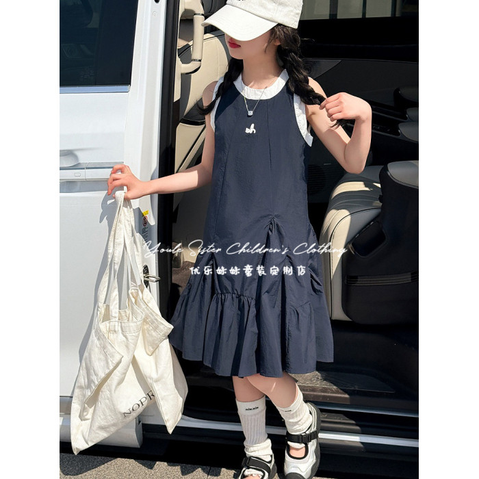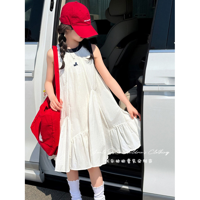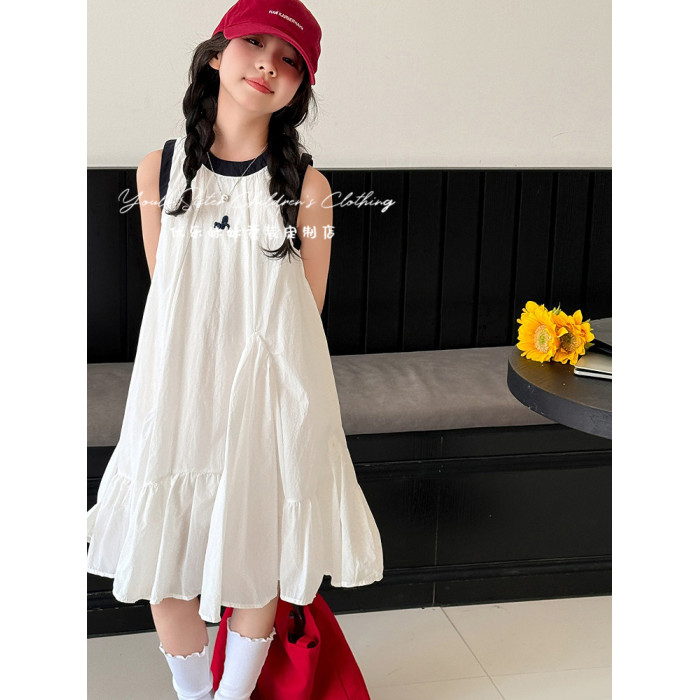 女童夏季連衣裙2025新款兒童洋氣純棉背心裙女大童白色超好看裙子