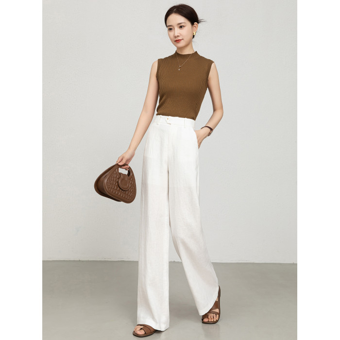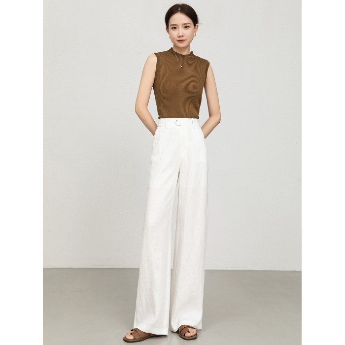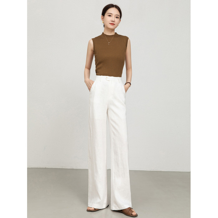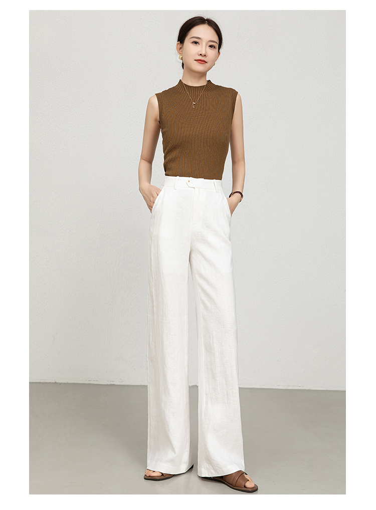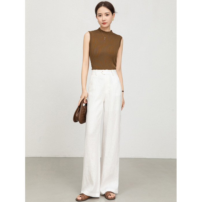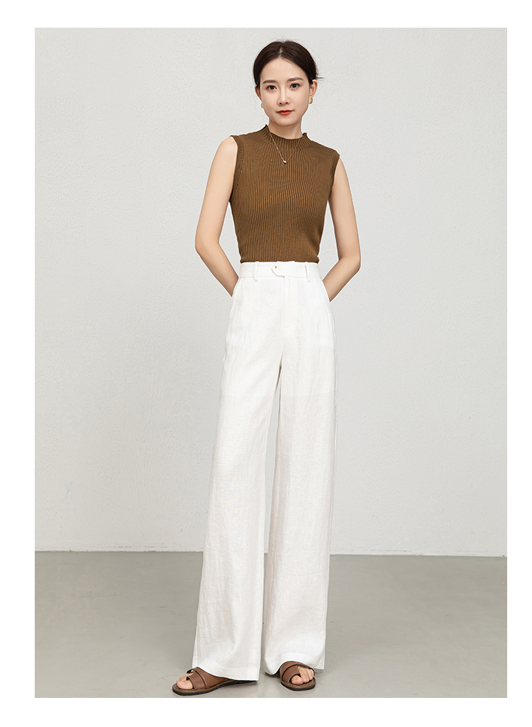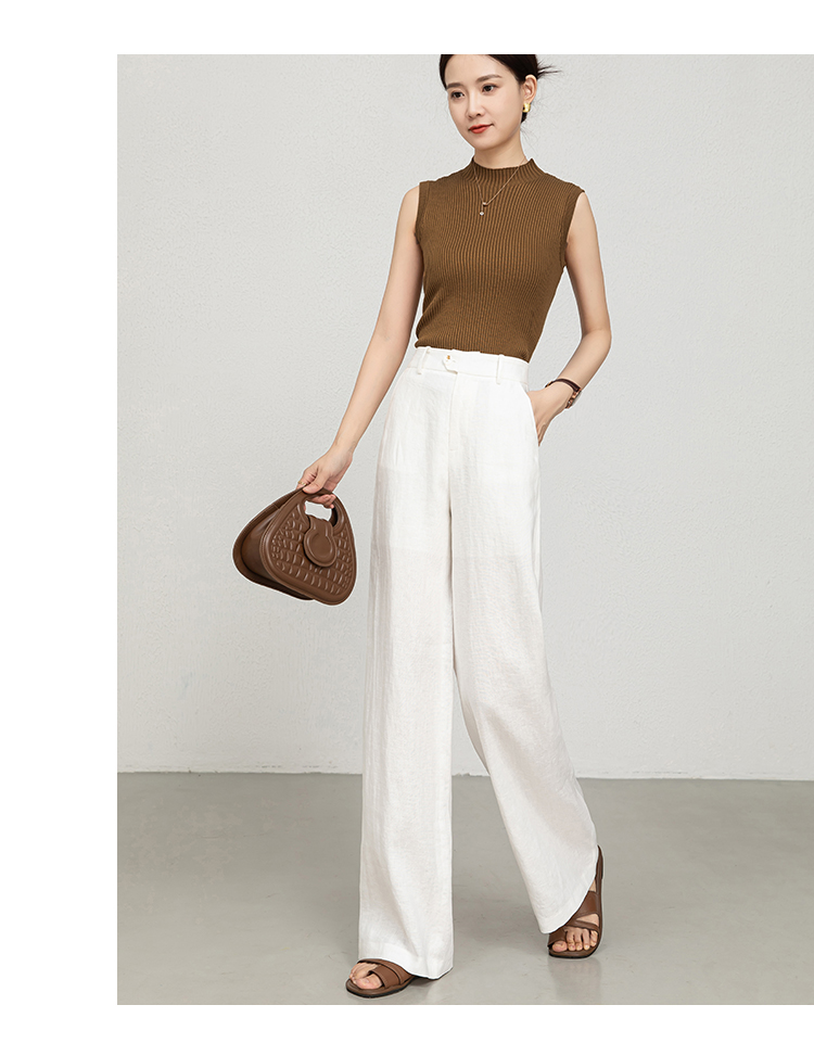舒適透氣100%純亞麻直筒褲女白色長褲2025夏季新款高腰休閒濶腿褲