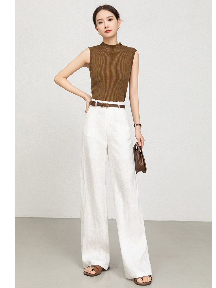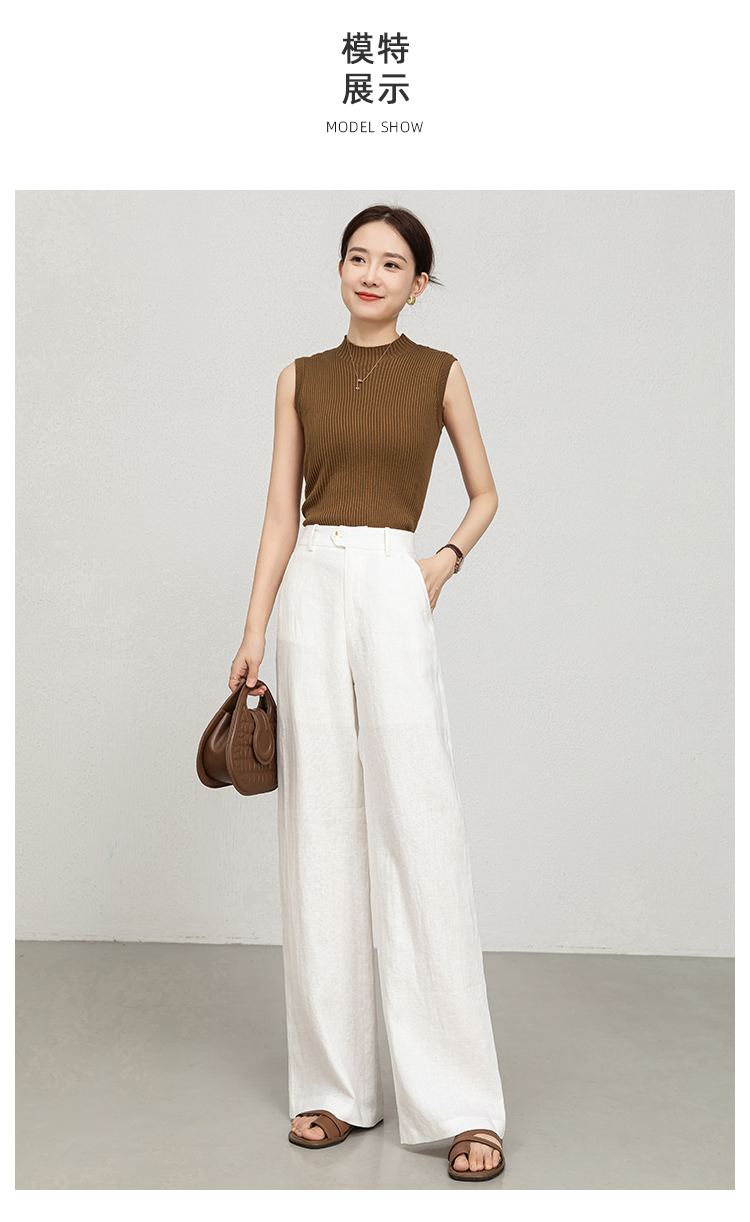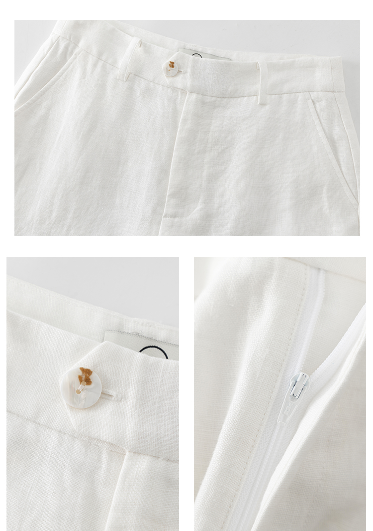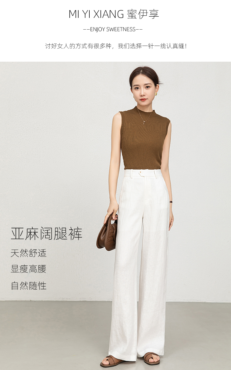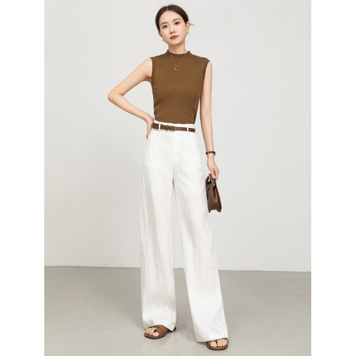 舒適透氣100%純亞麻直筒褲女白色長褲2025夏季新款高腰休閒濶腿褲