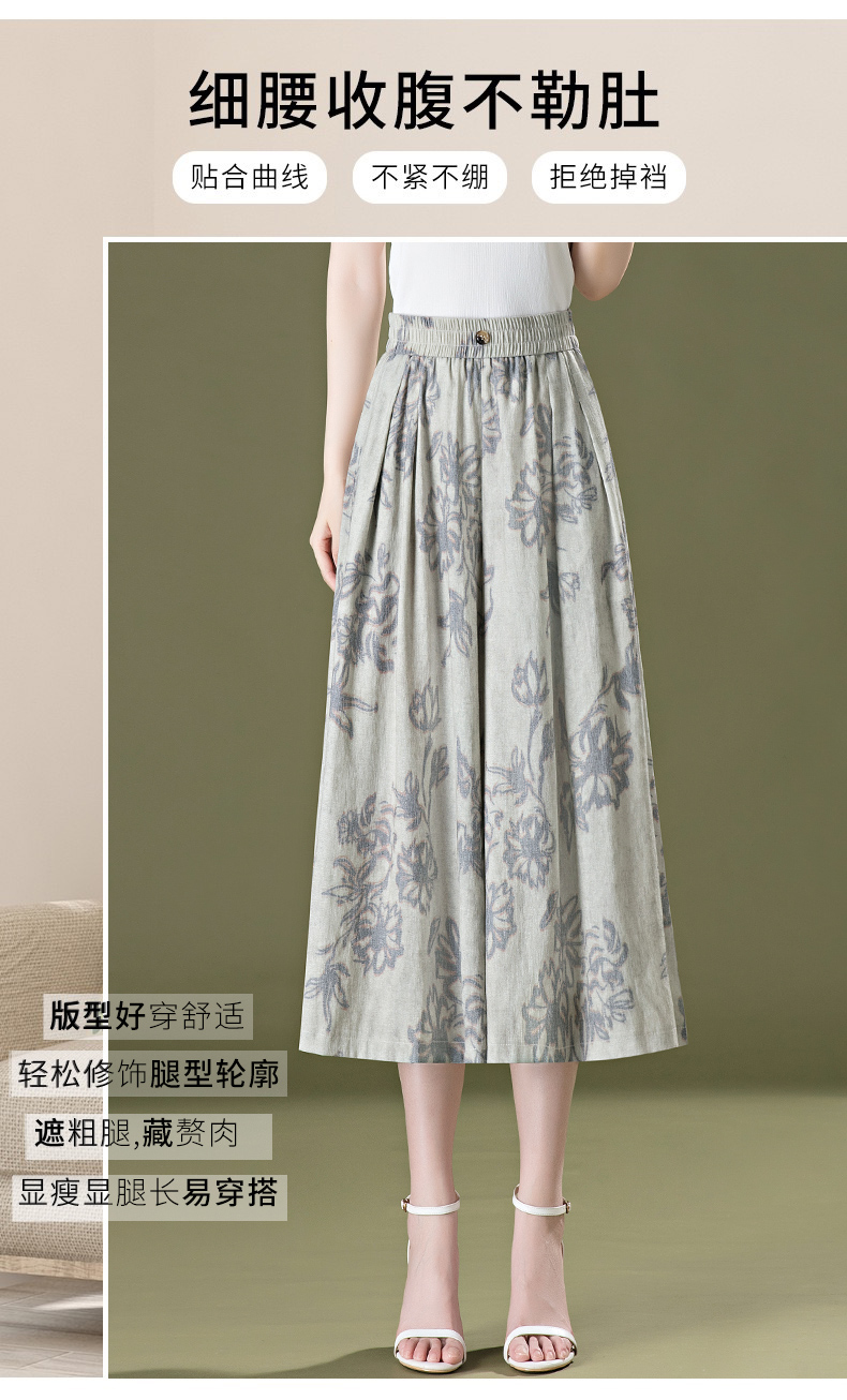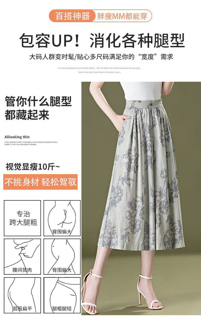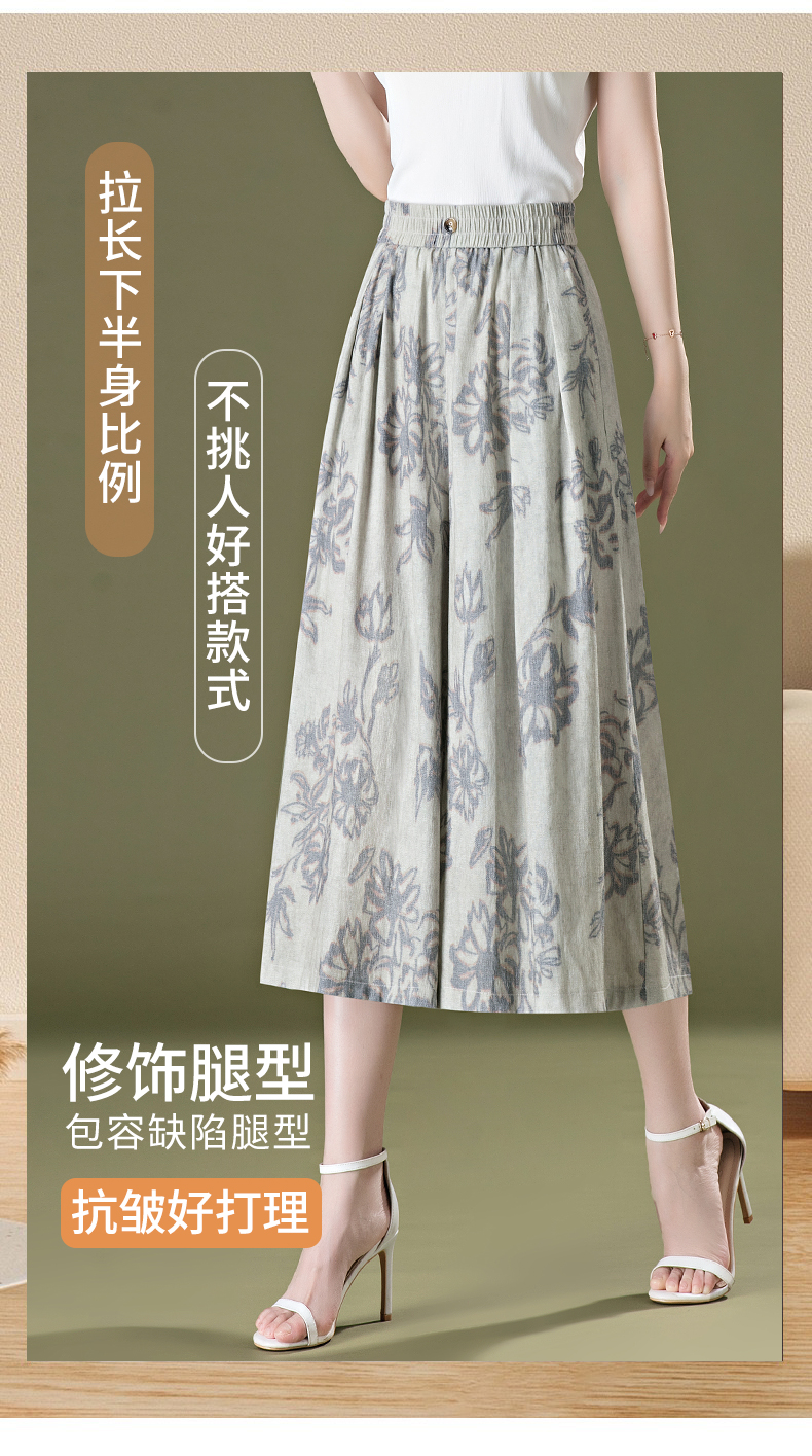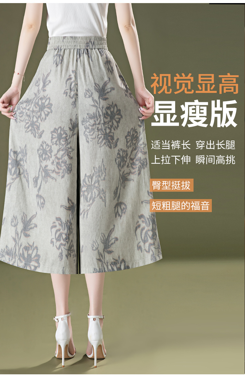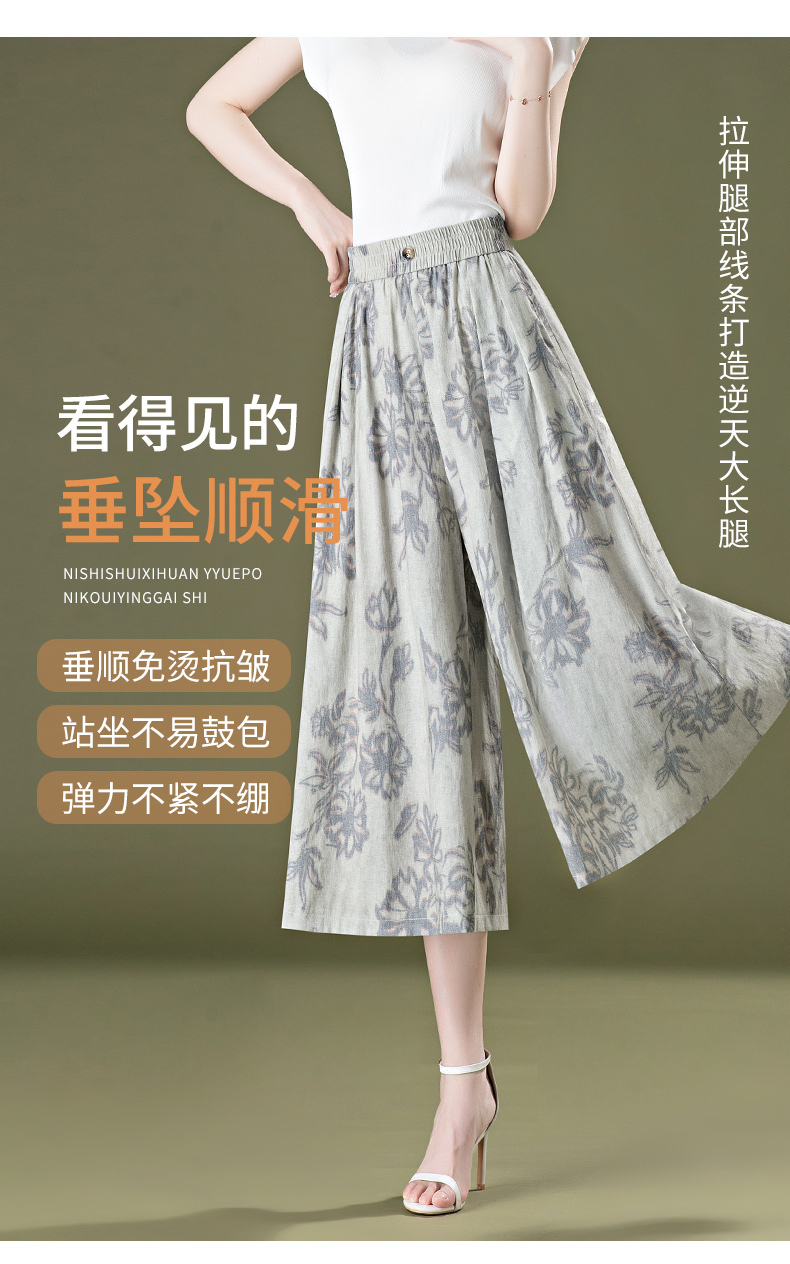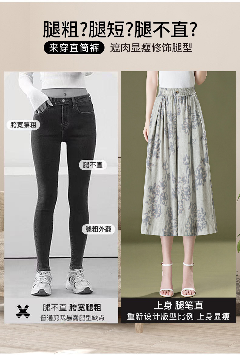 冰絲濶腿褲女夏季薄款2025新款高腰垂感寬松八分褲子休閒花褲裙褲