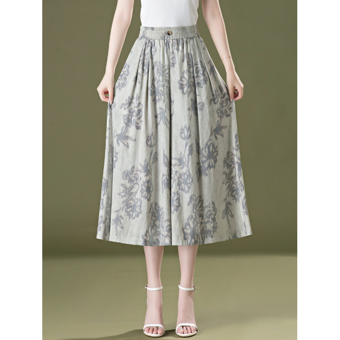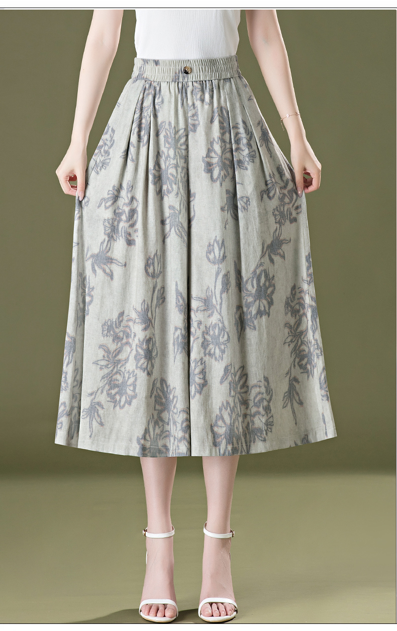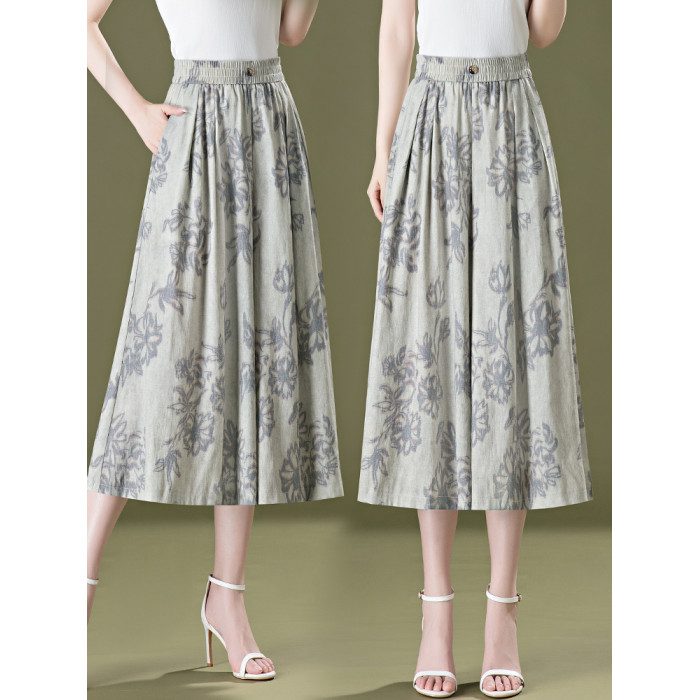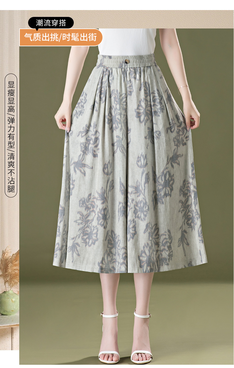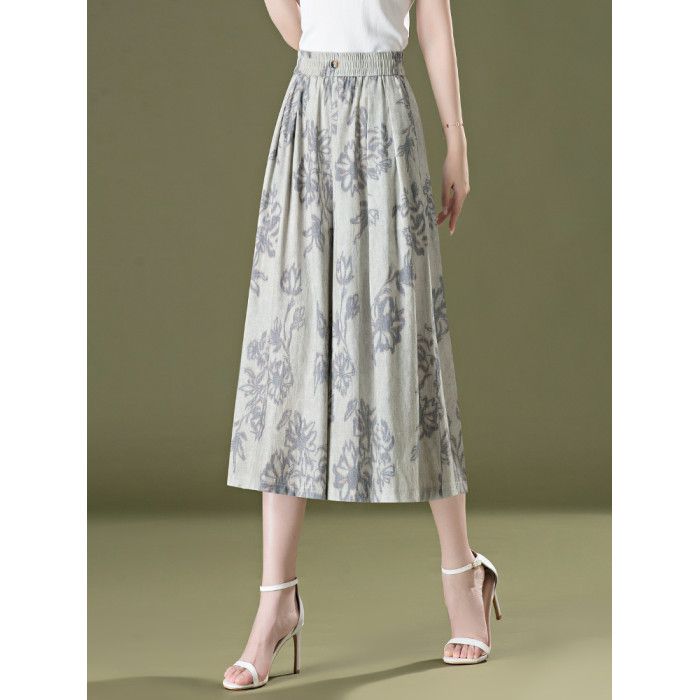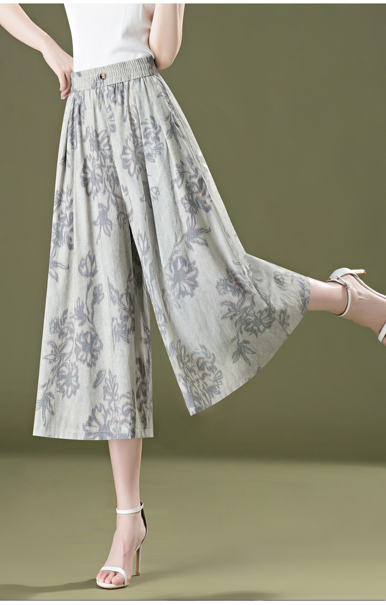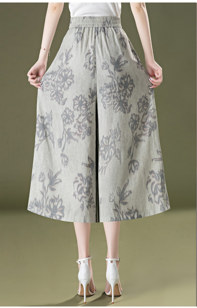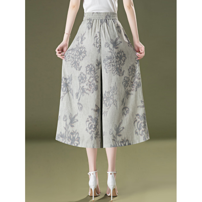 冰絲濶腿褲女夏季薄款2025新款高腰垂感寬松八分褲子休閒花褲裙褲