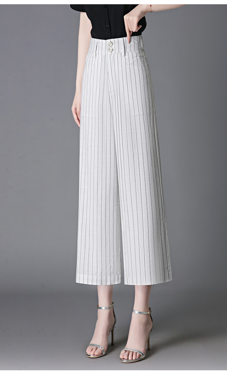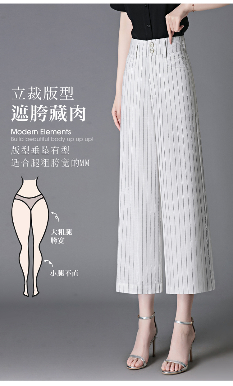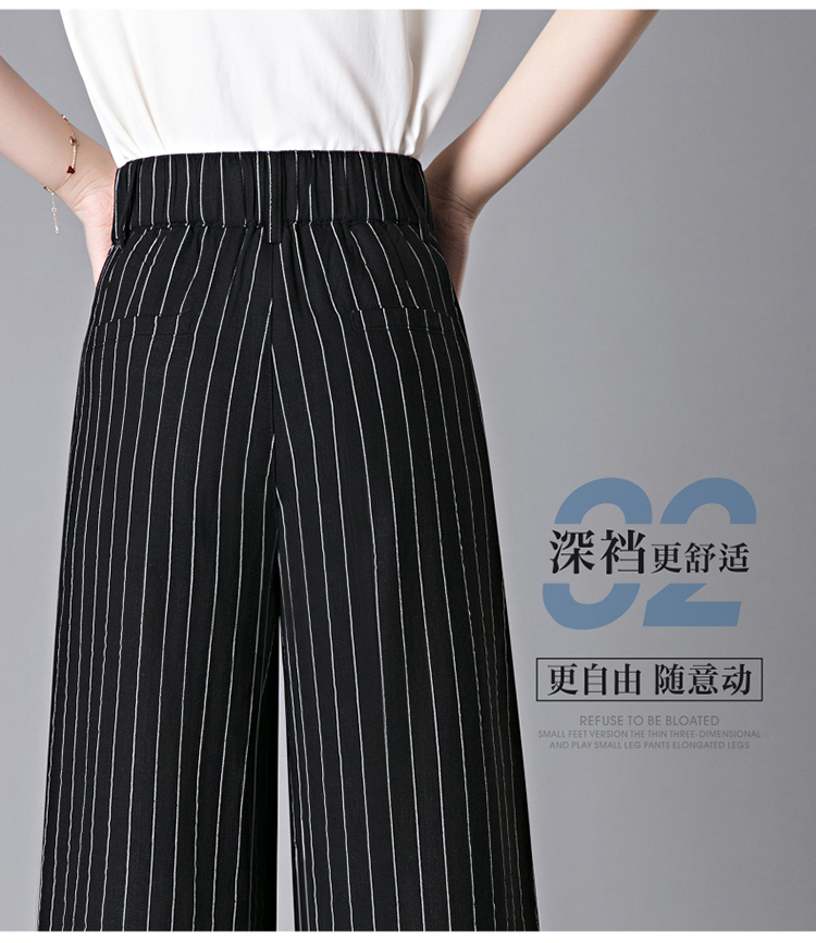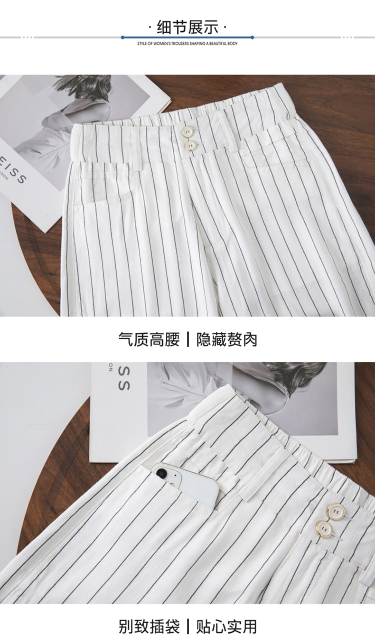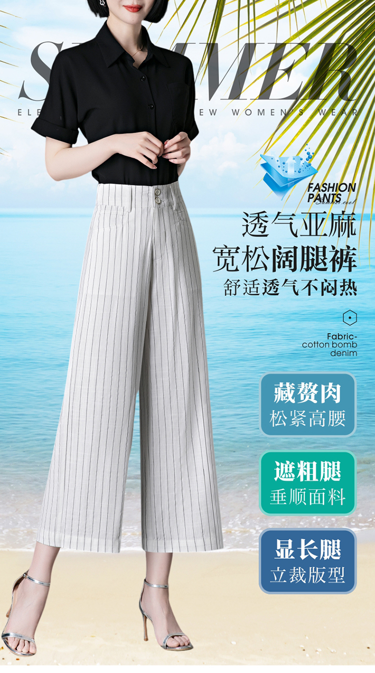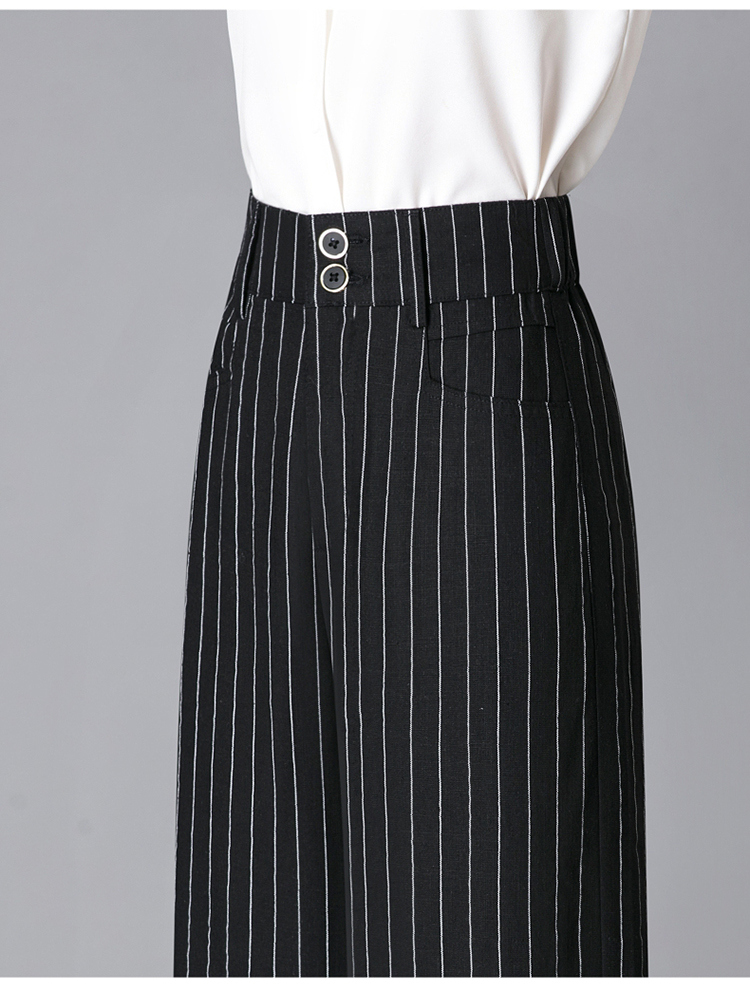 亞麻濶腿褲女2025夏季新款顯瘦寬松小個子九分直筒褲條紋西裝褲薄