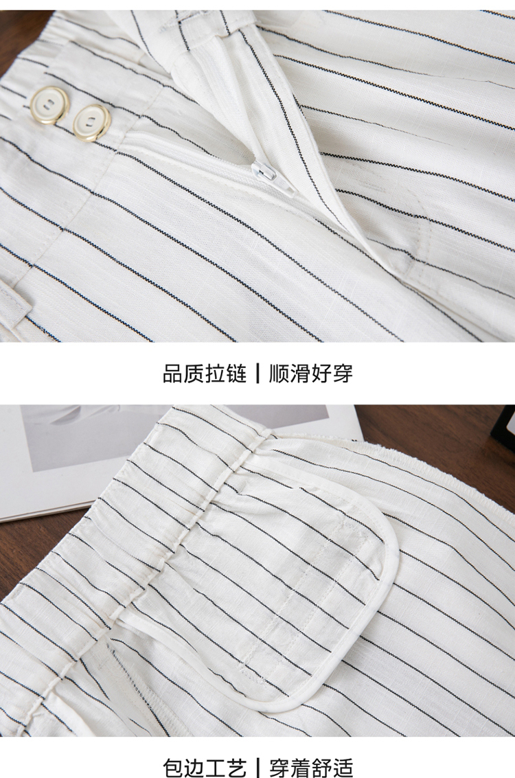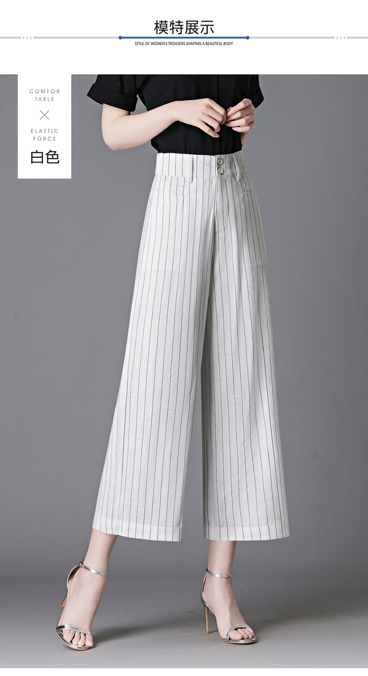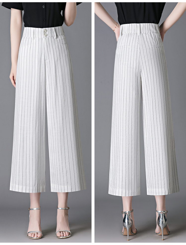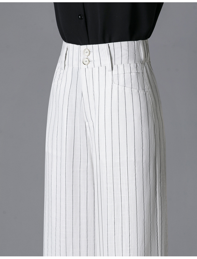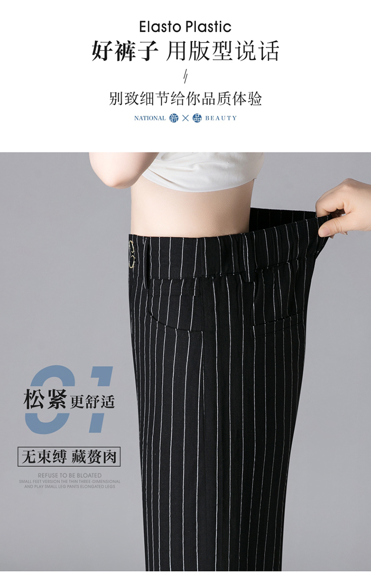 亞麻濶腿褲女2025夏季新款顯瘦寬松小個子九分直筒褲條紋西裝褲薄