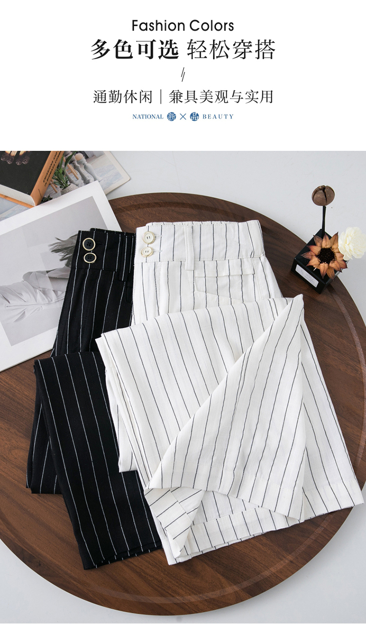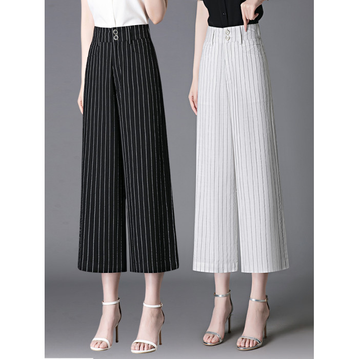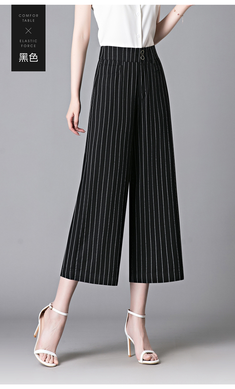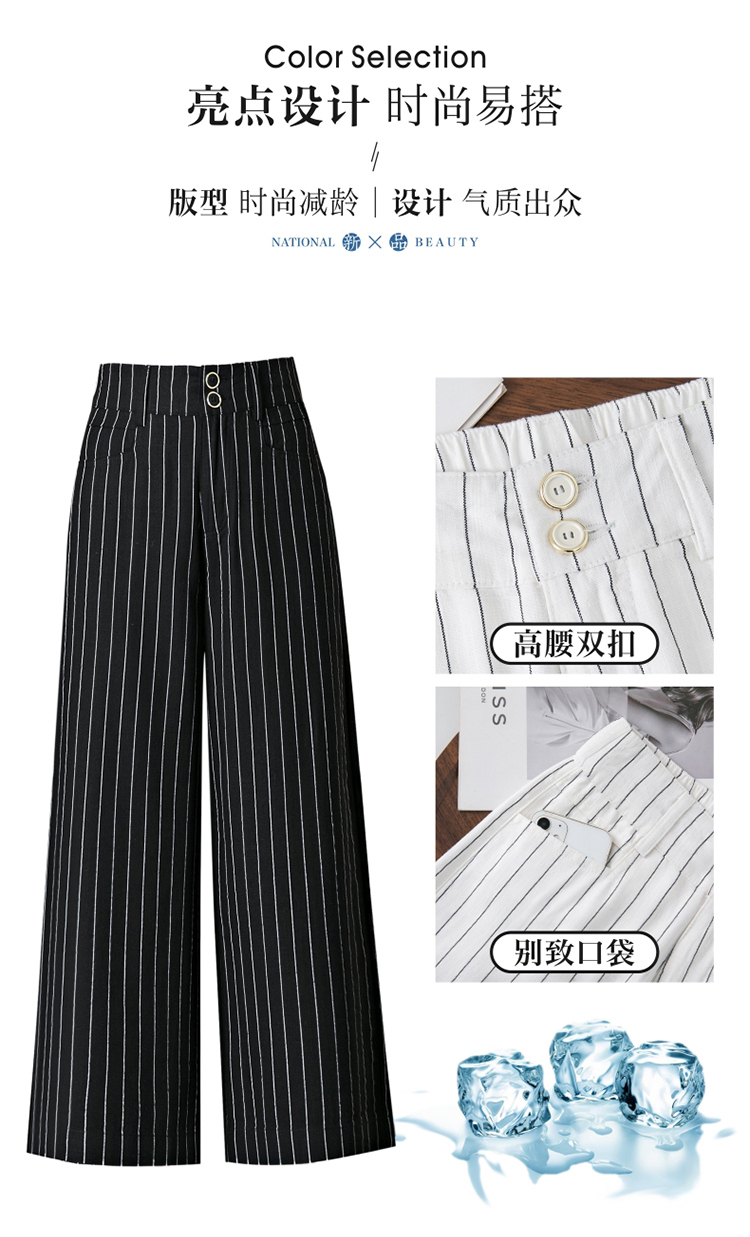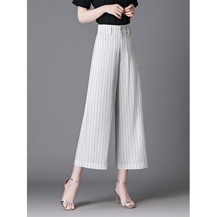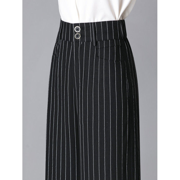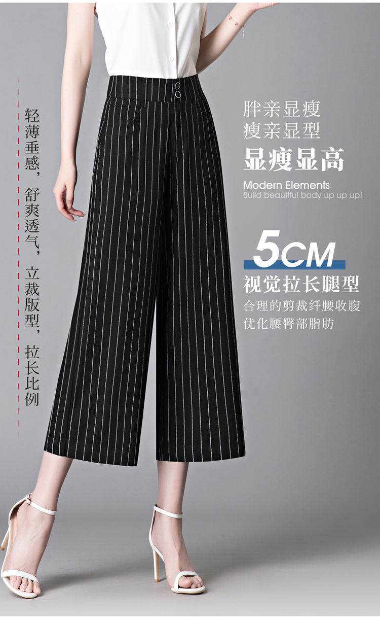 亞麻濶腿褲女2025夏季新款顯瘦寬松小個子九分直筒褲條紋西裝褲薄