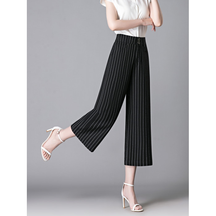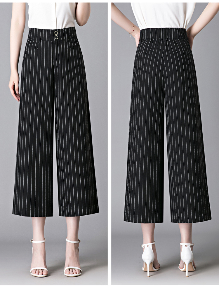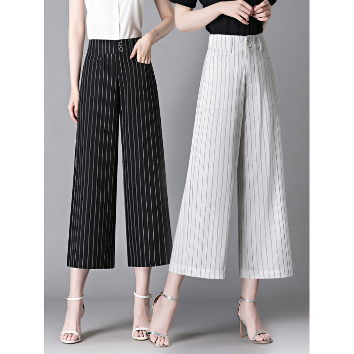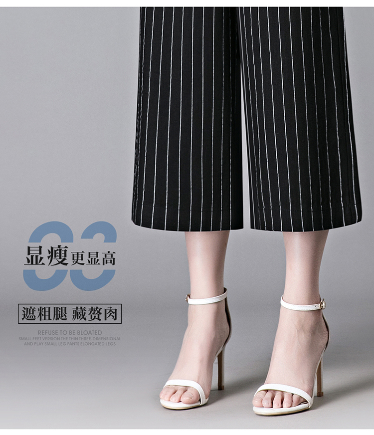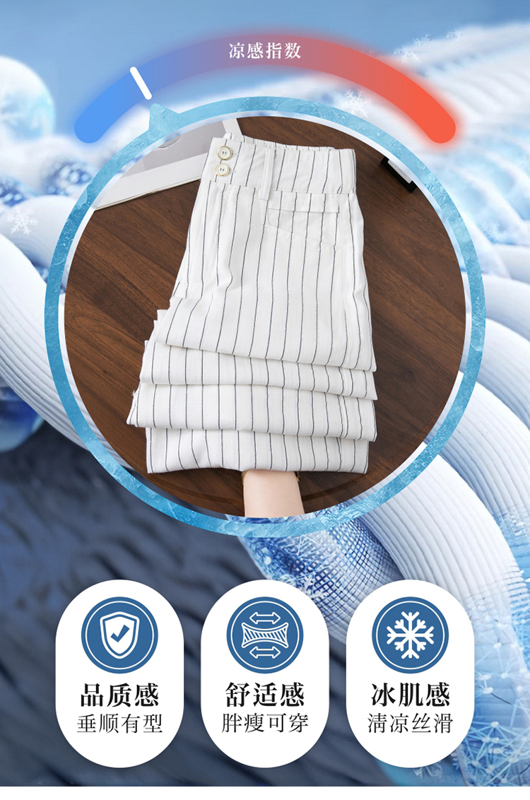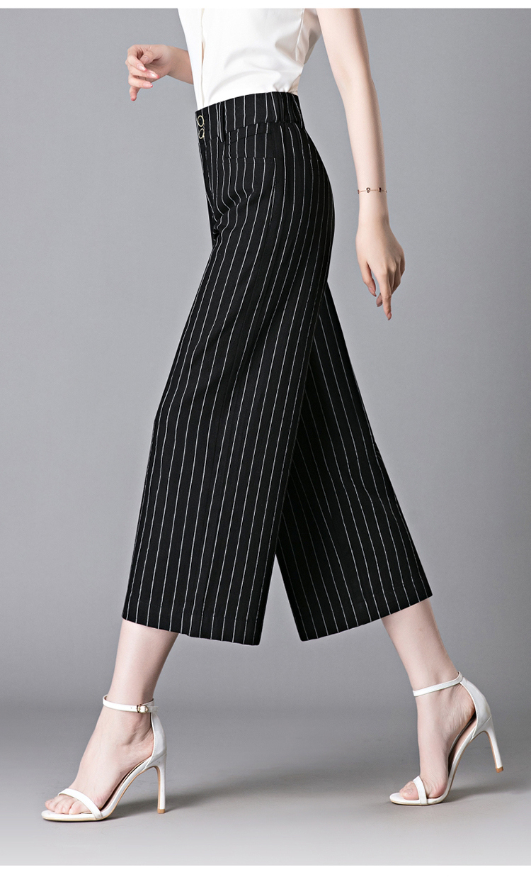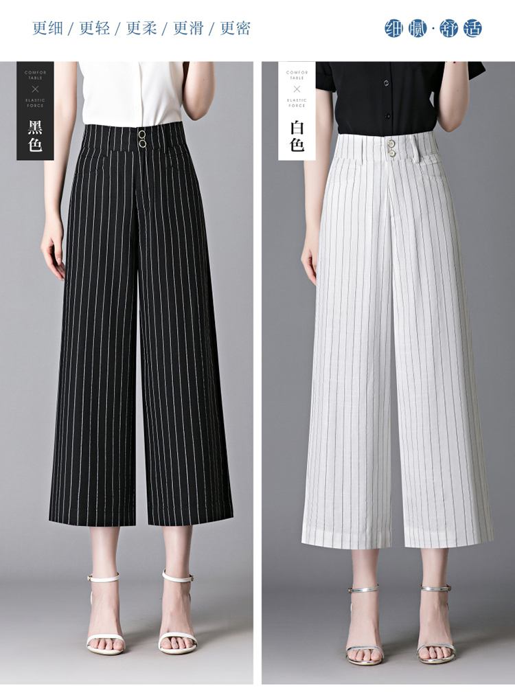 亞麻濶腿褲女2025夏季新款顯瘦寬松小個子九分直筒褲條紋西裝褲薄