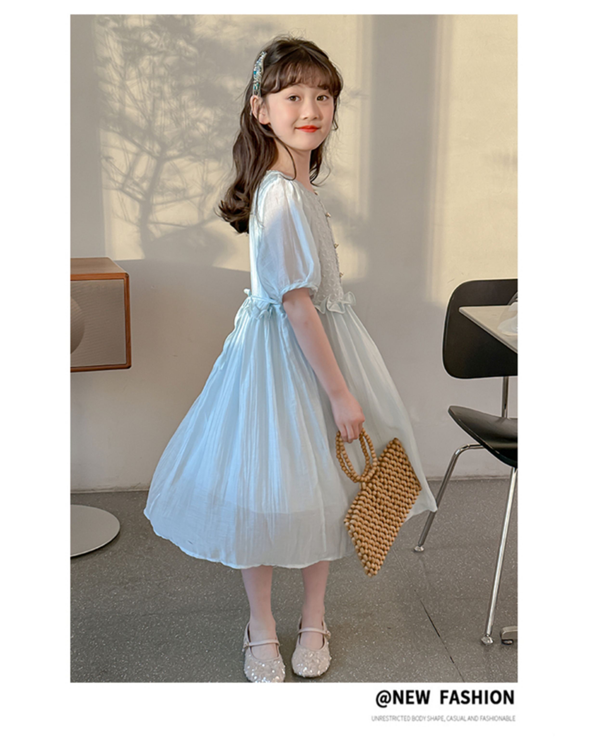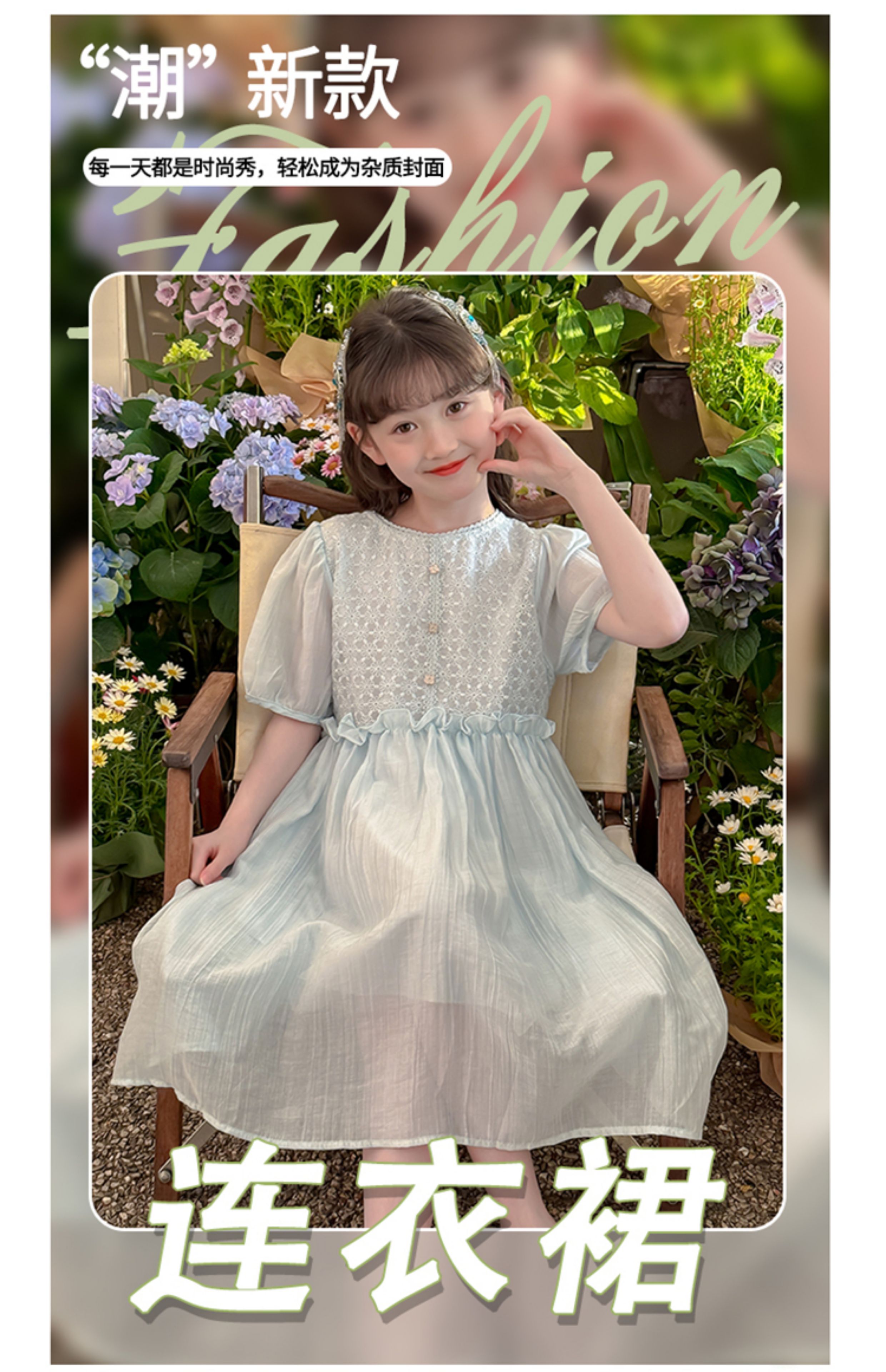 英國Next Svip藍色裙子女童連衣裙夏季薄款2025新款兒童公主裙子