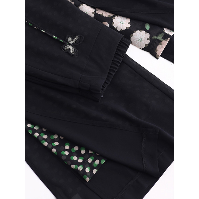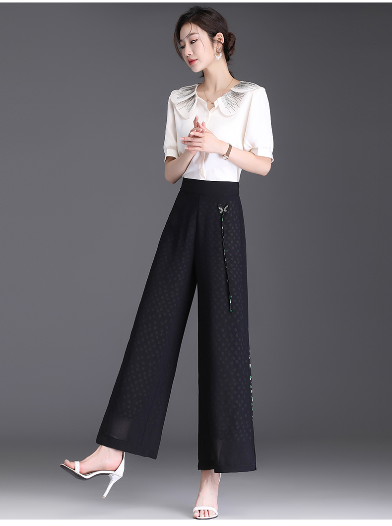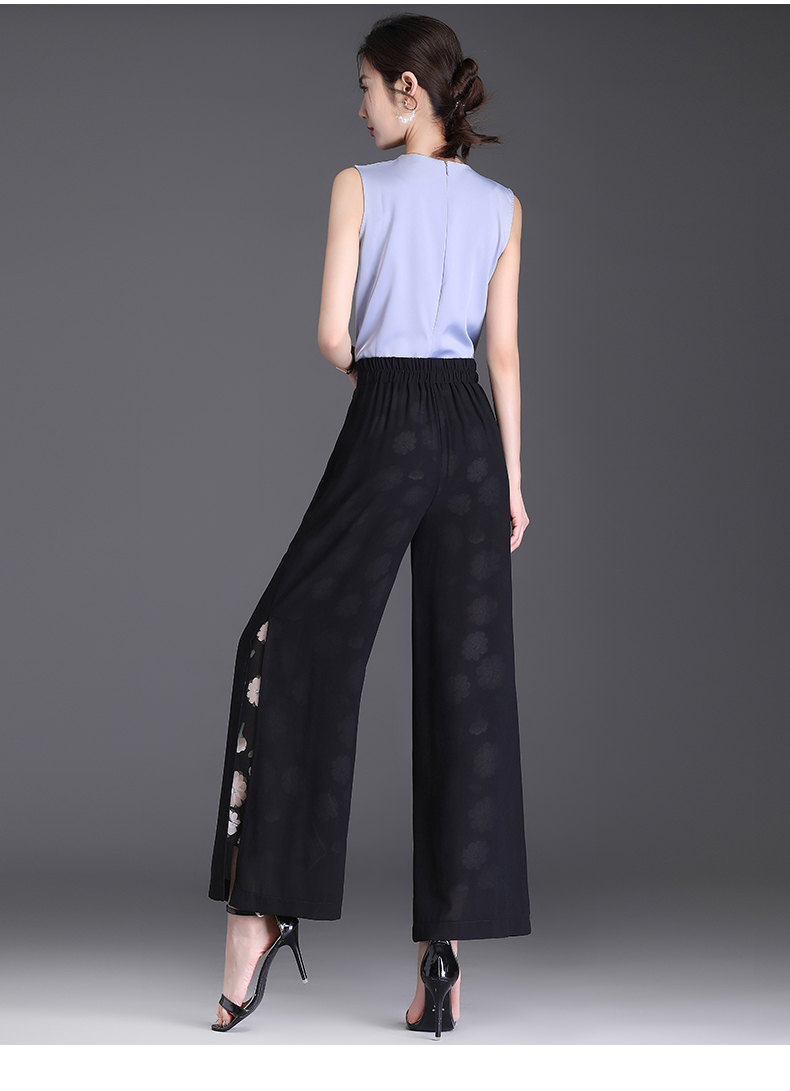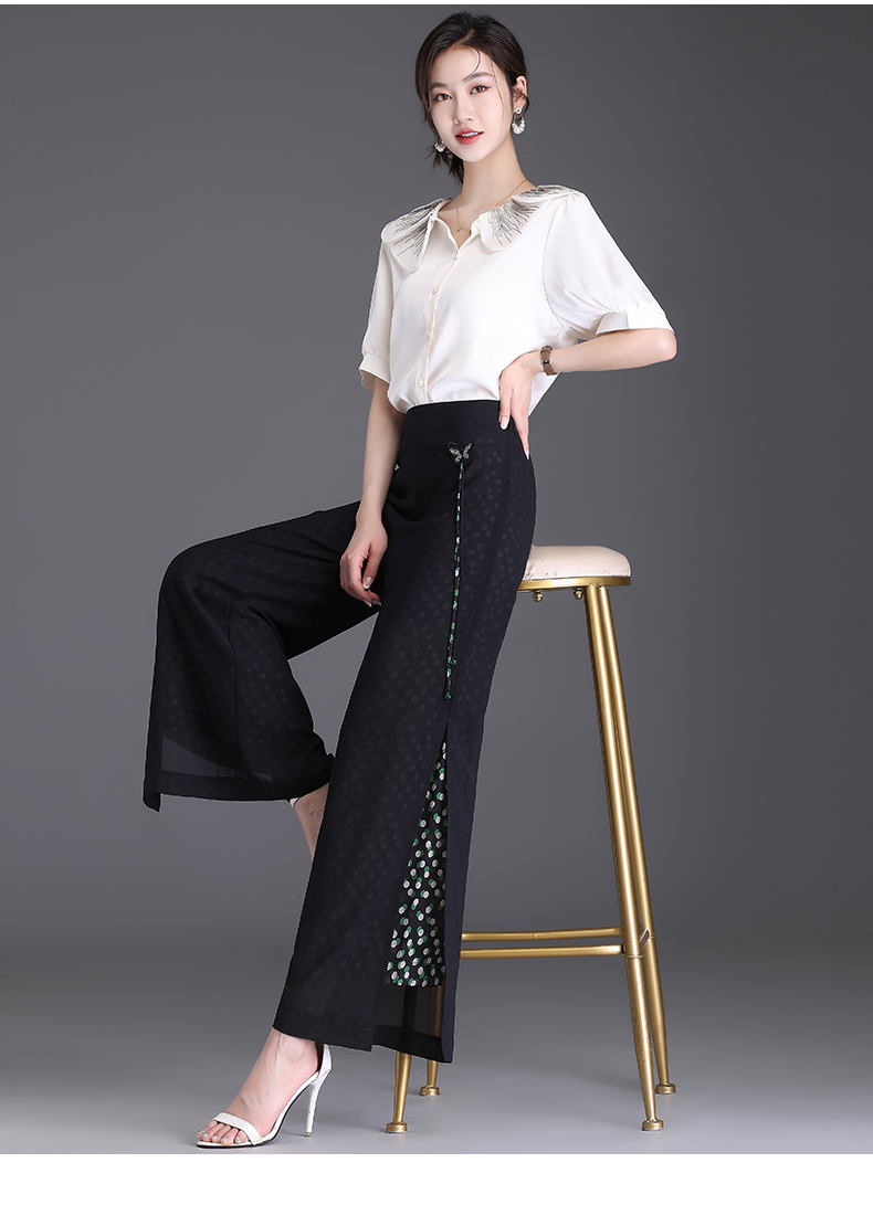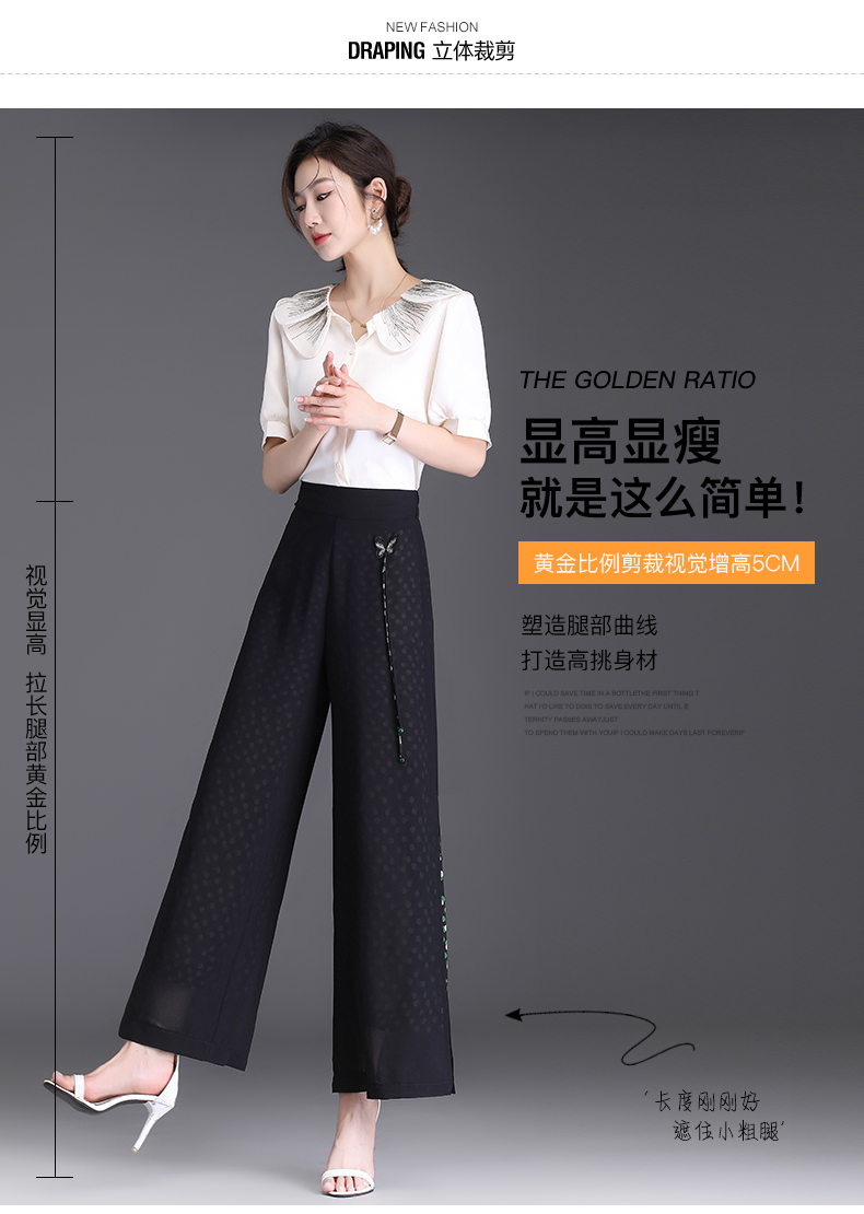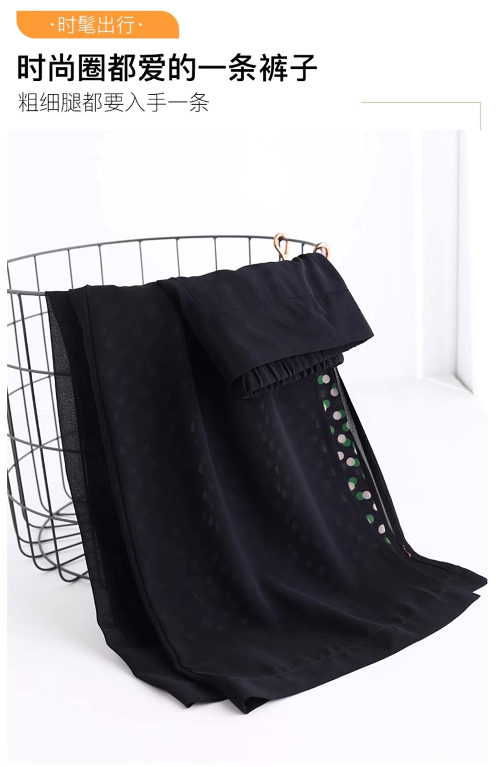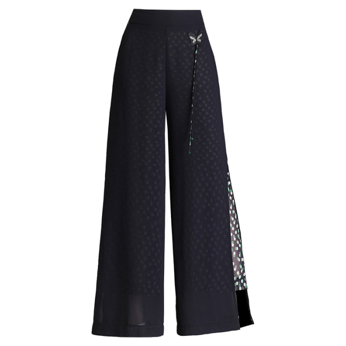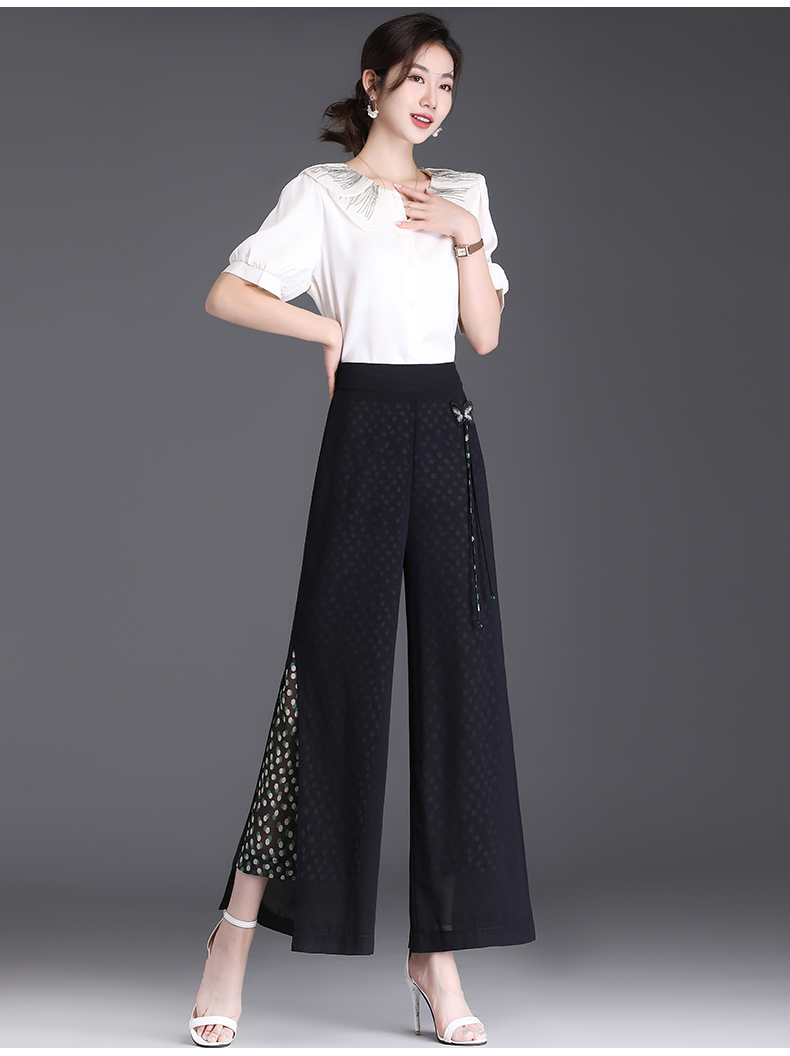 雪紡九分褲女夏季薄款裙褲國風印花直筒中老年媽媽褲子開叉濶腿褲