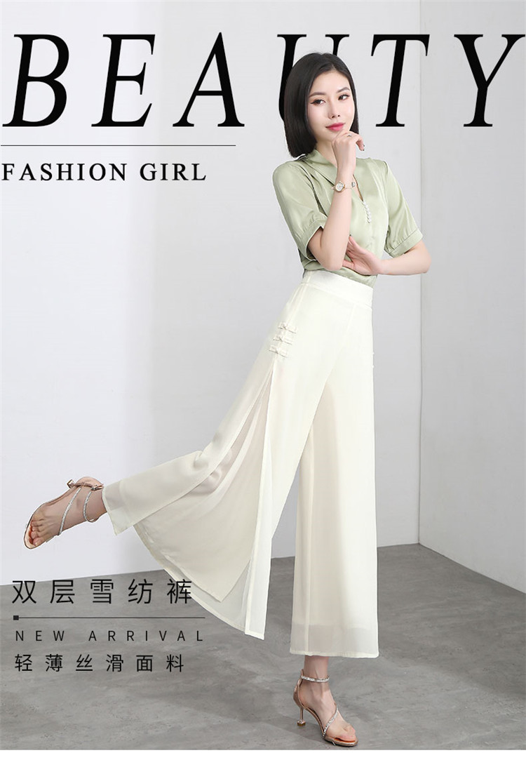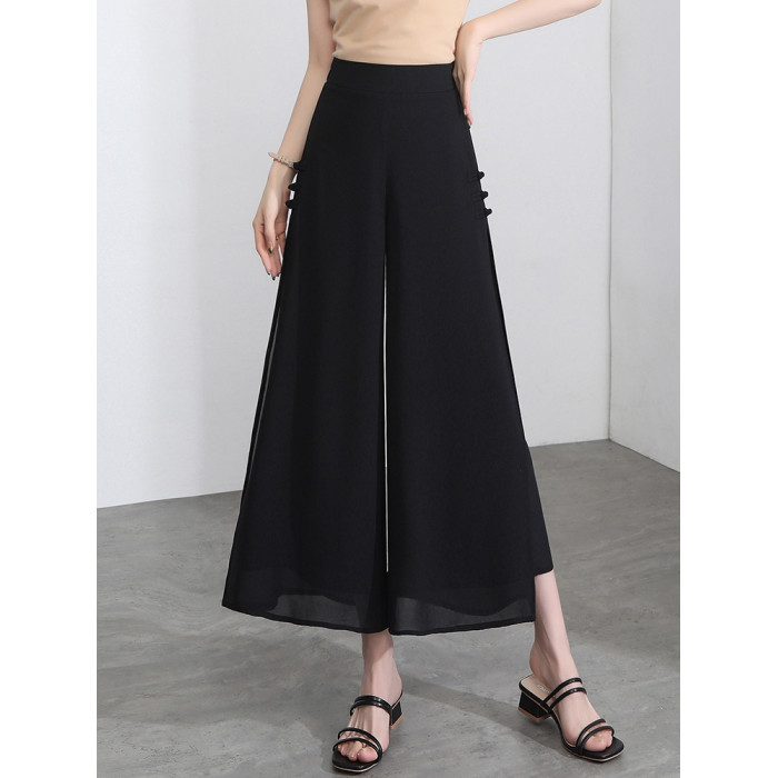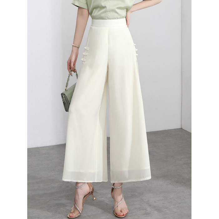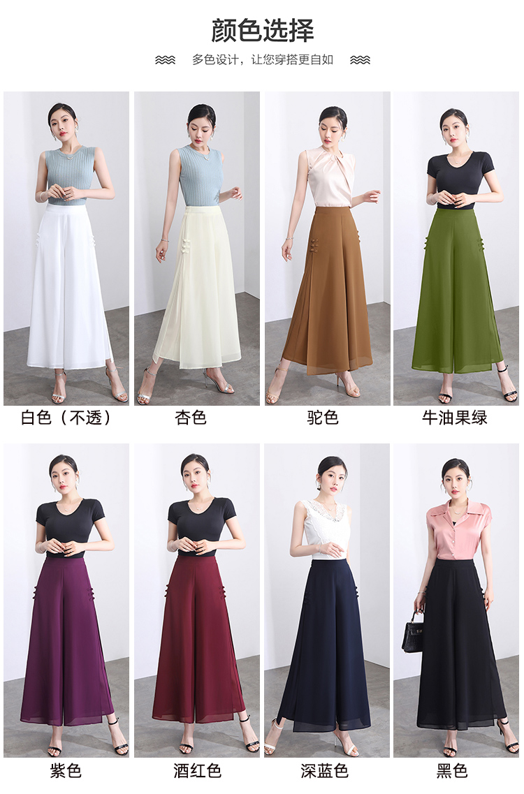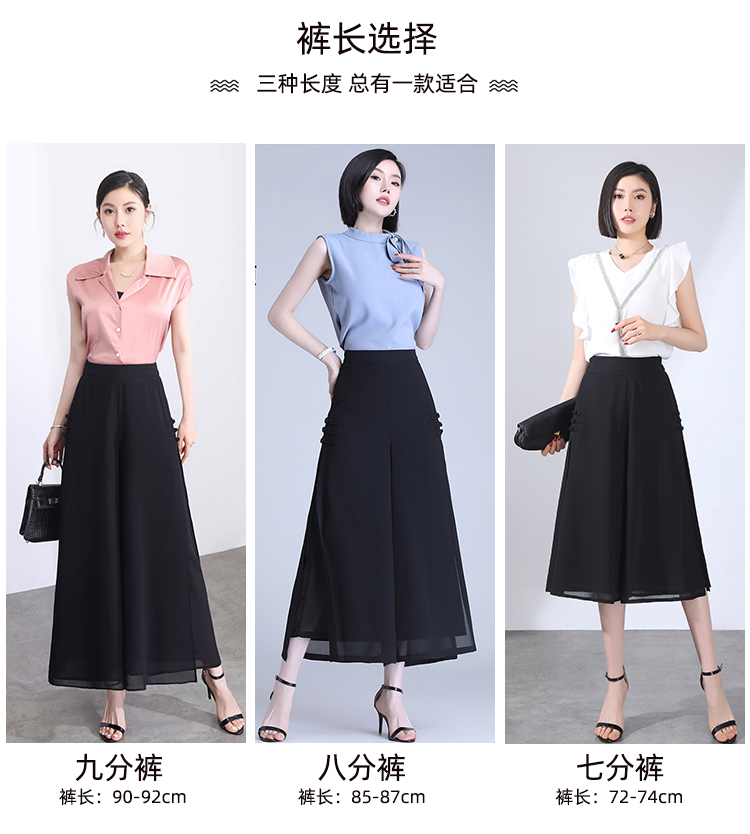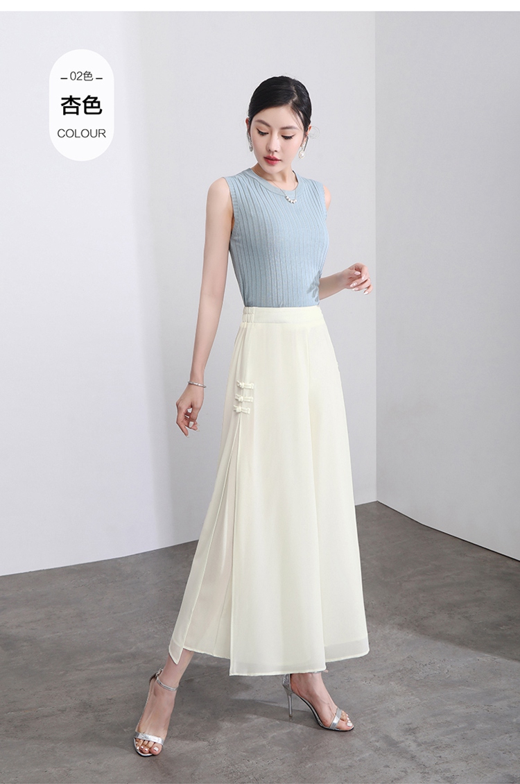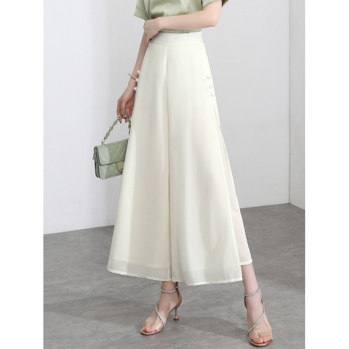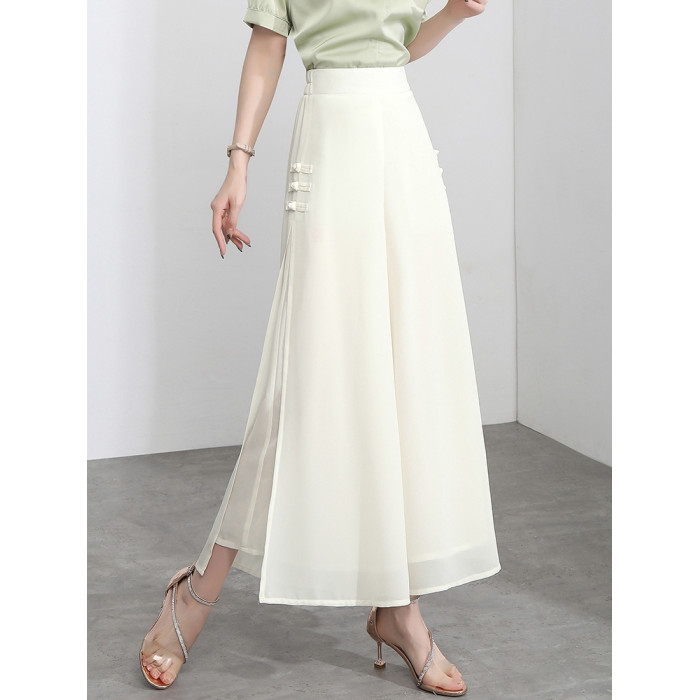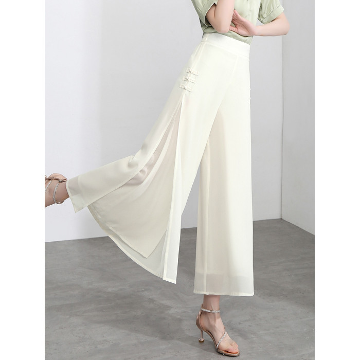 隅見丨開叉濶腿褲女新款白色高腰寬松顯瘦夏季裙褲垂感雪紡九分褲