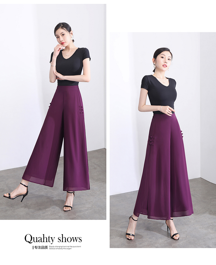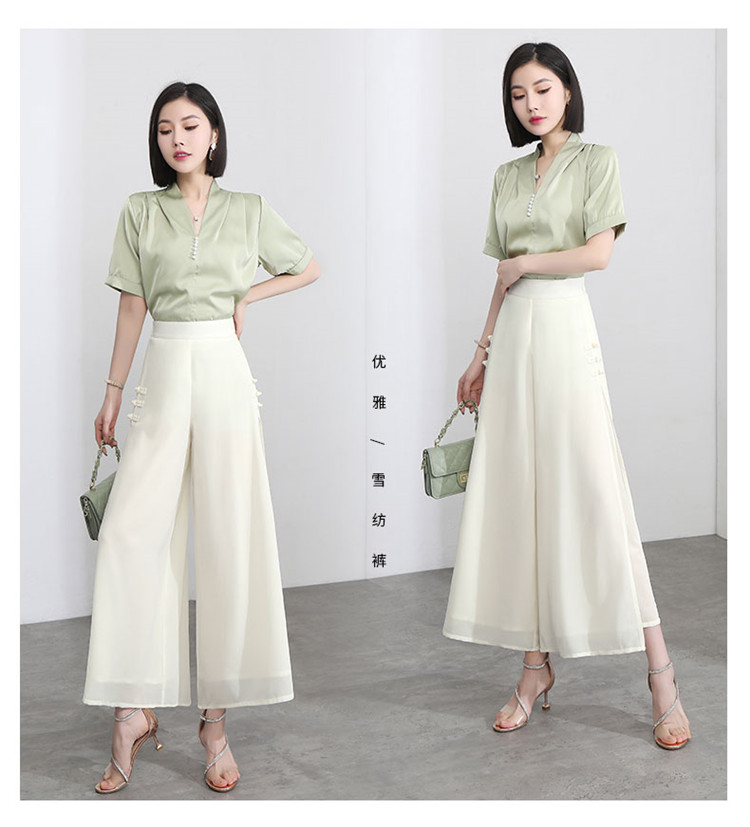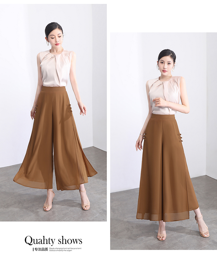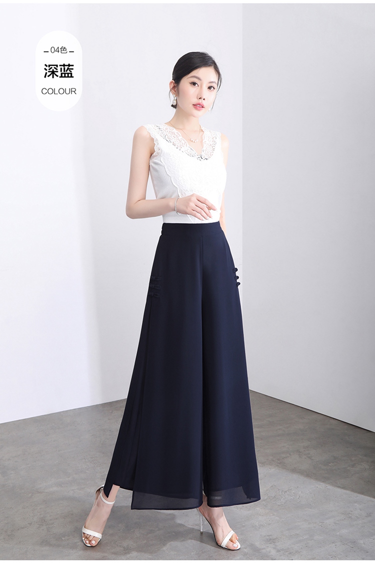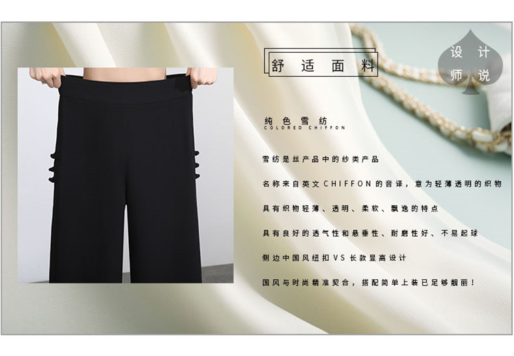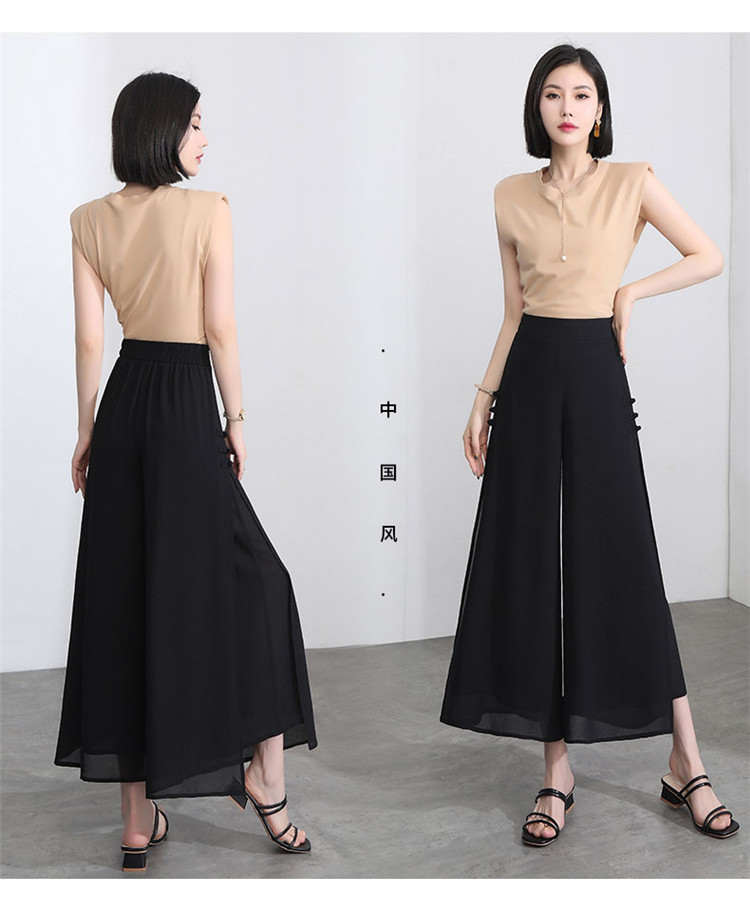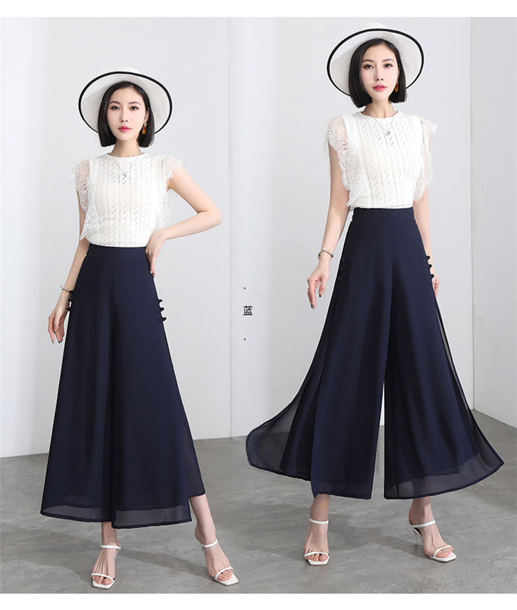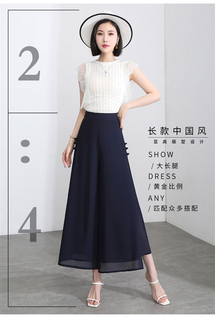 隅見丨開叉濶腿褲女新款白色高腰寬松顯瘦夏季裙褲垂感雪紡九分褲