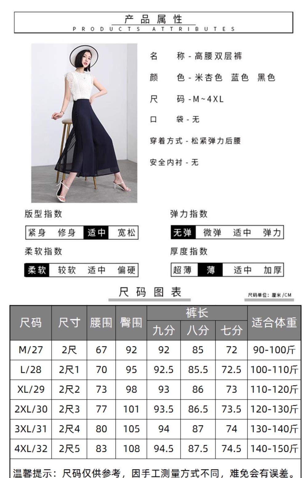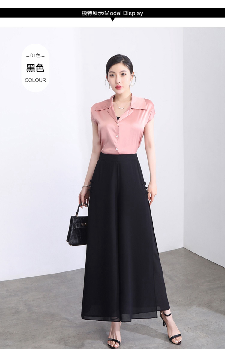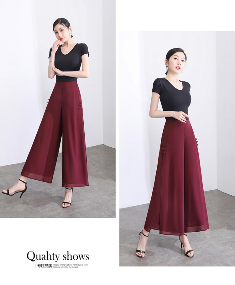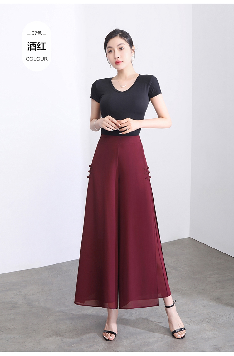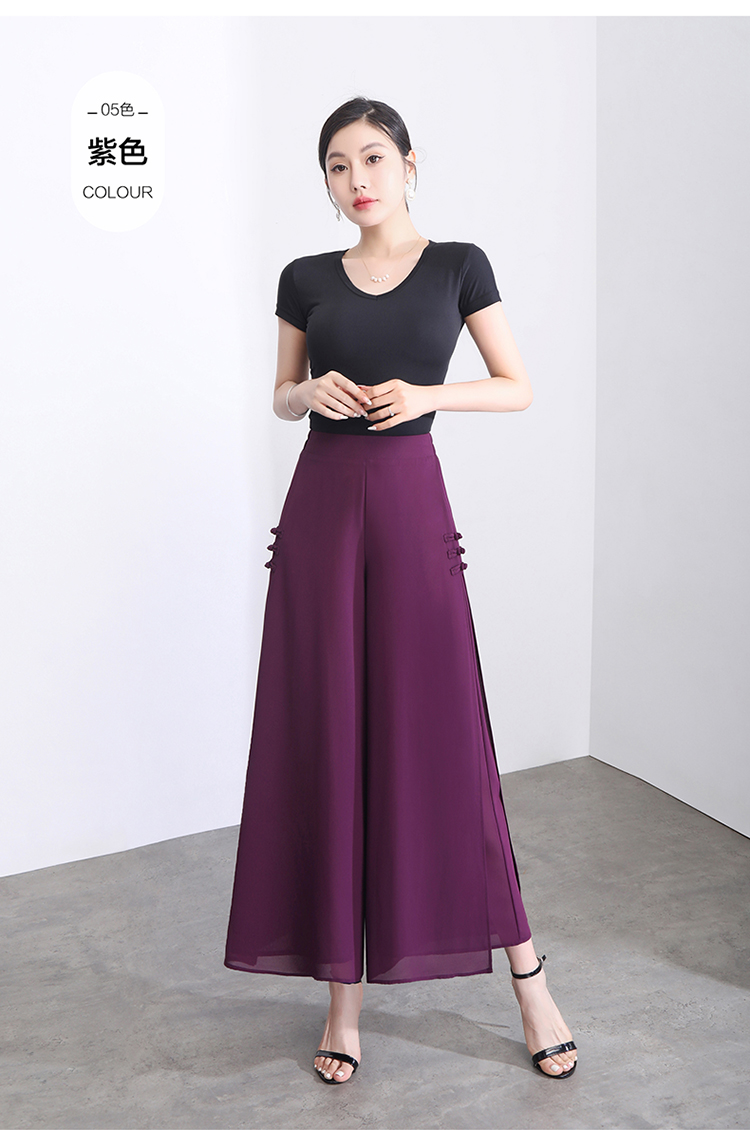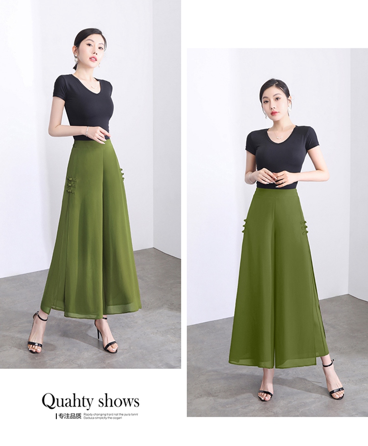 隅見丨開叉濶腿褲女新款白色高腰寬松顯瘦夏季裙褲垂感雪紡九分褲