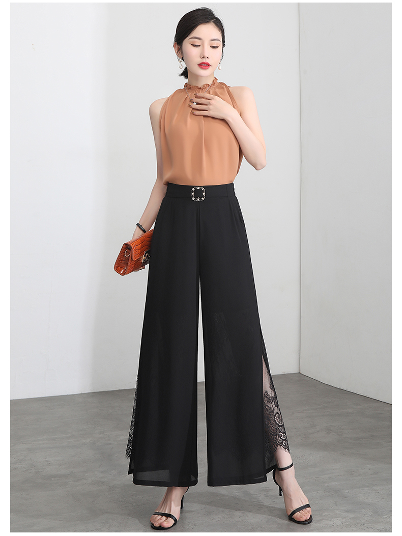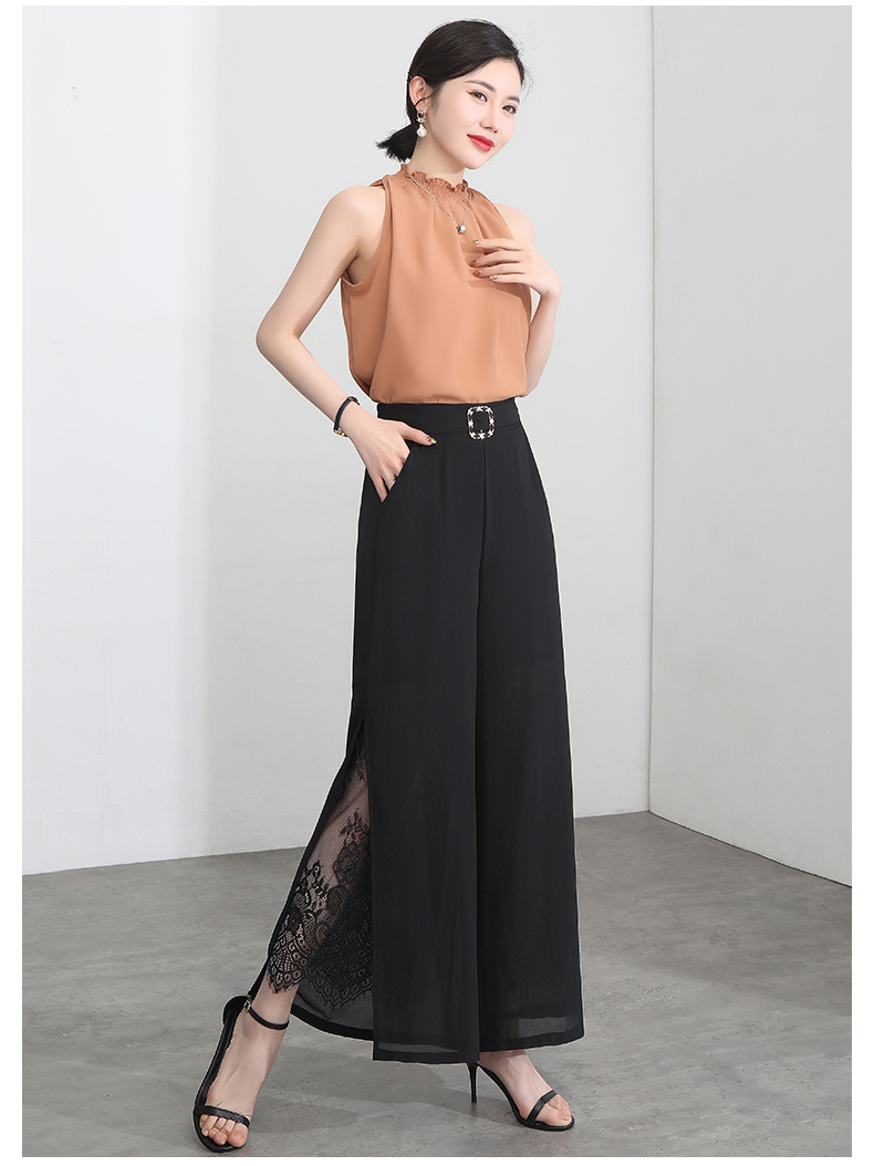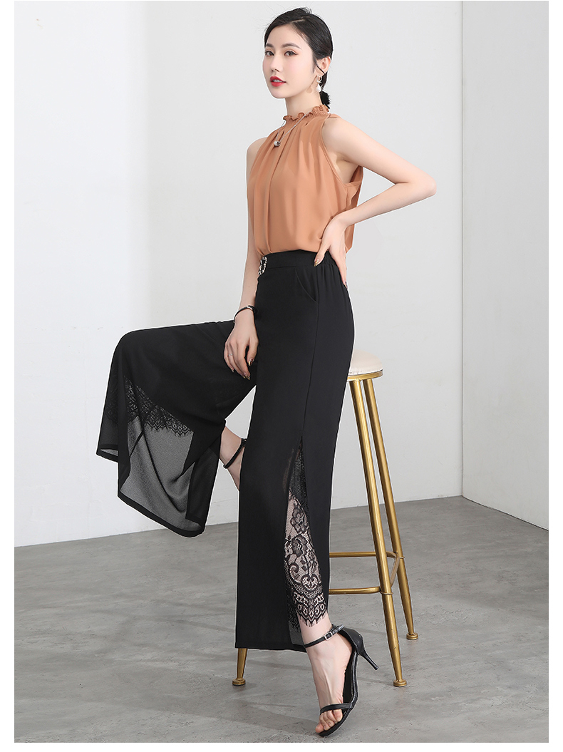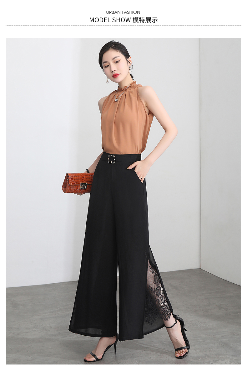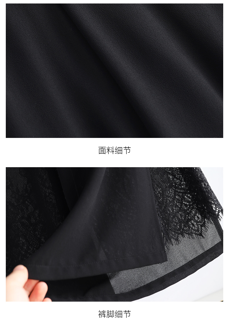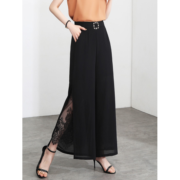 九分褲蕾絲拼接開叉雪紡裙褲女夏季薄款時尚高腰寬松濶腿褲媽媽褲