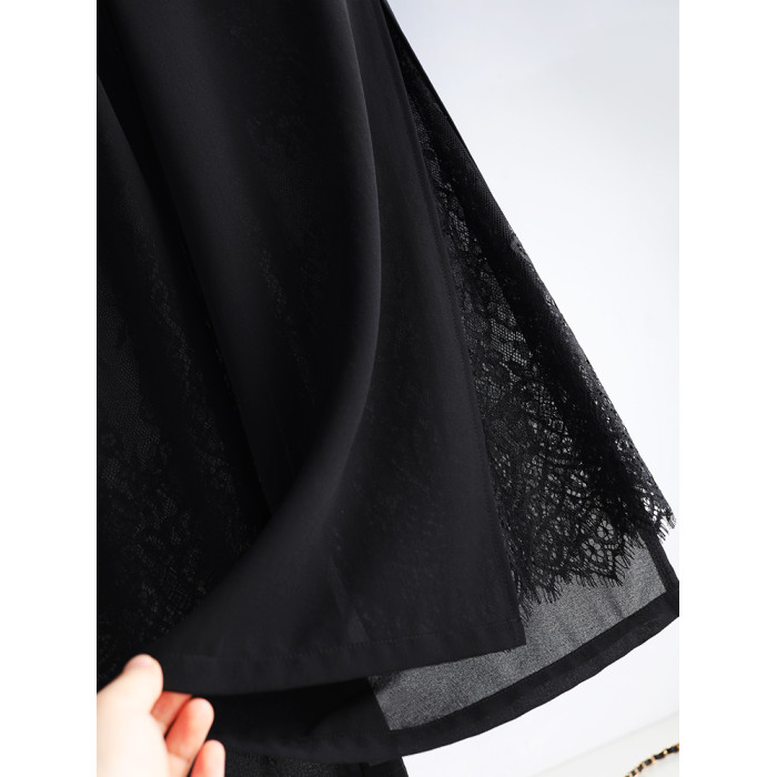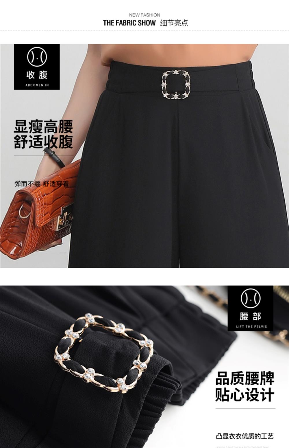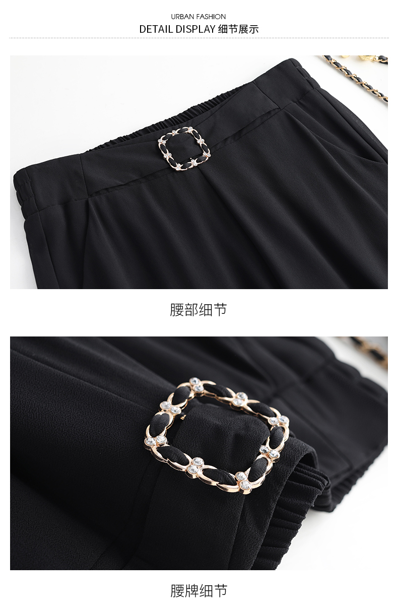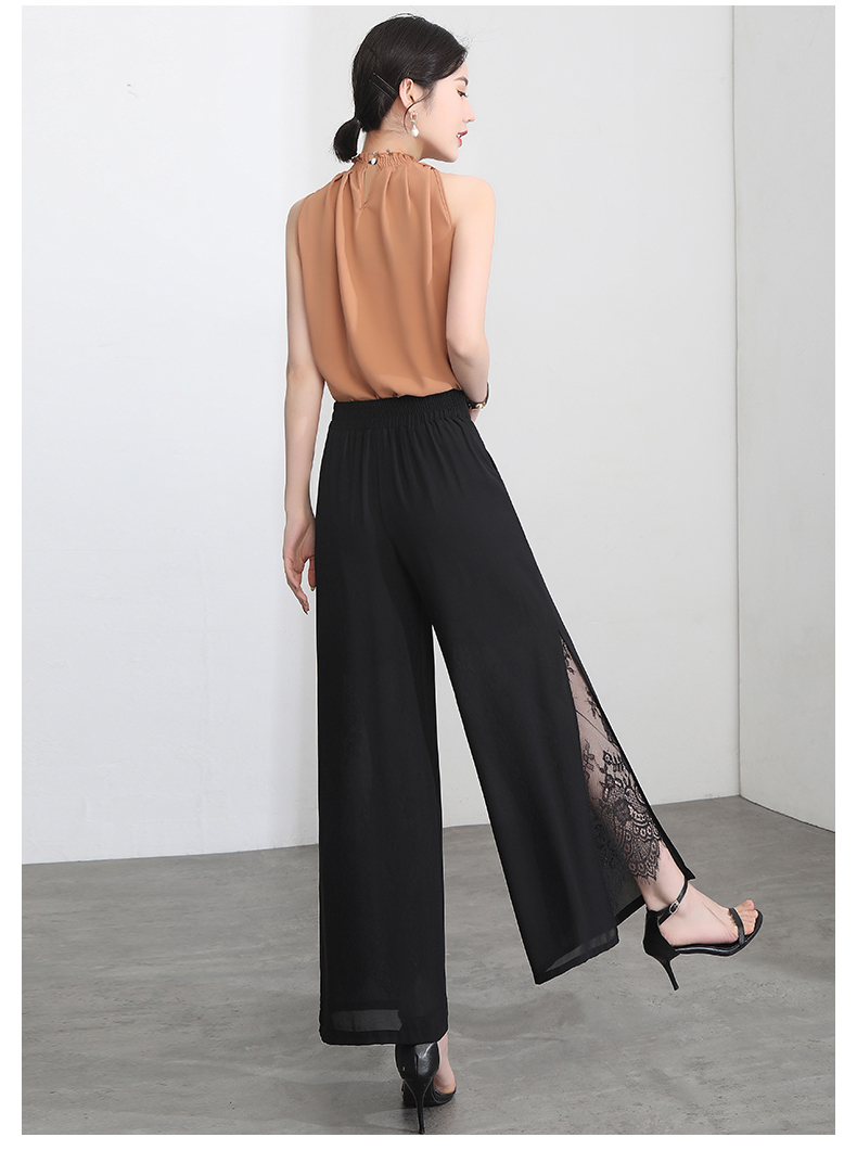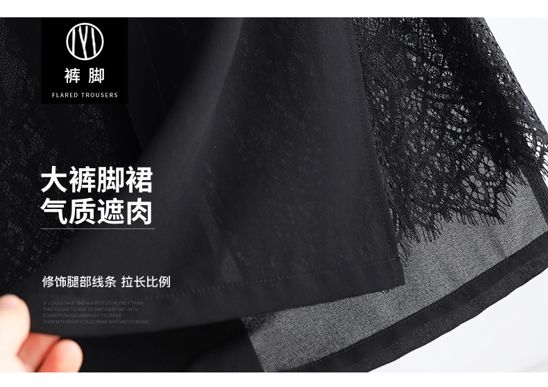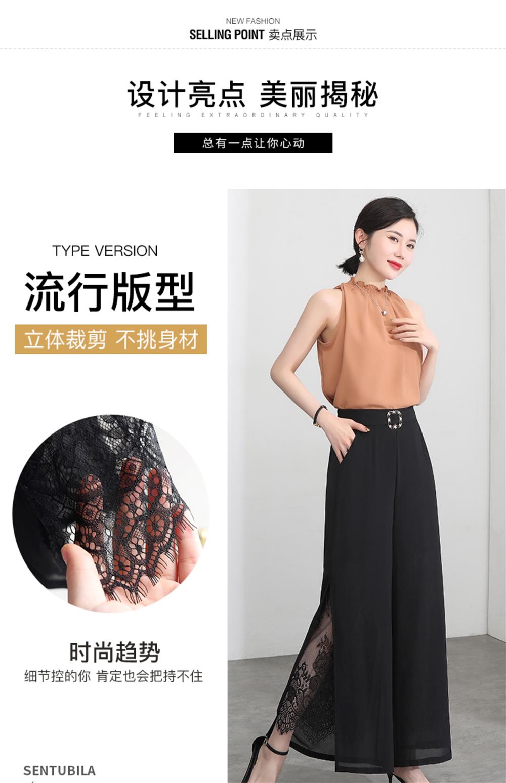 九分褲蕾絲拼接開叉雪紡裙褲女夏季薄款時尚高腰寬松濶腿褲媽媽褲