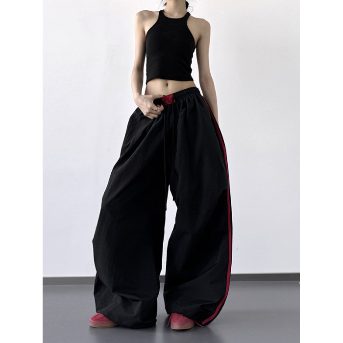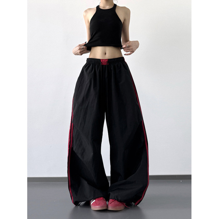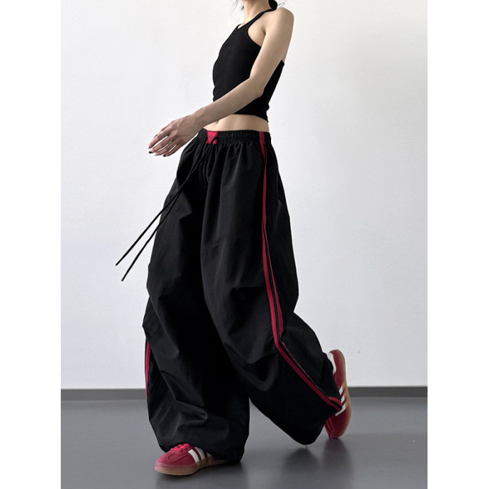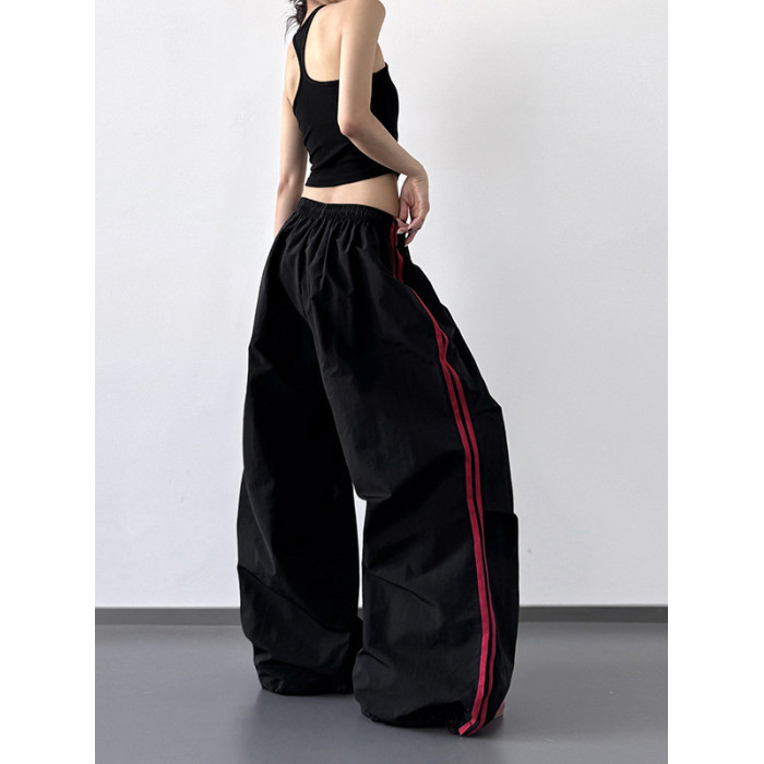 ADER涼感速乾運動繖兵褲子女2025夏季美式復古撞色條紋休閒濶腿褲