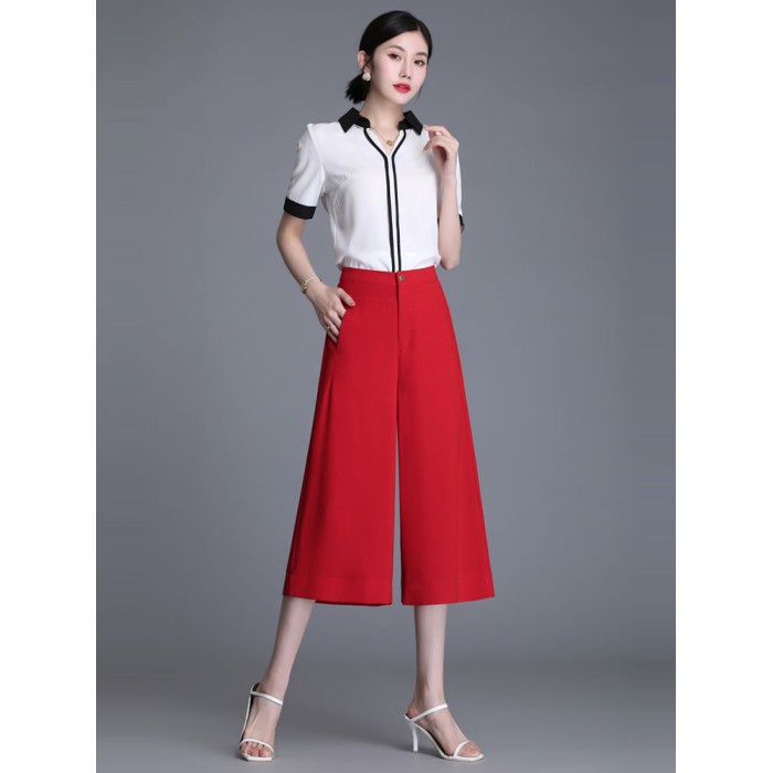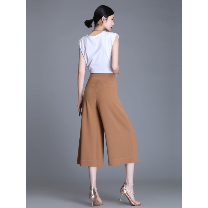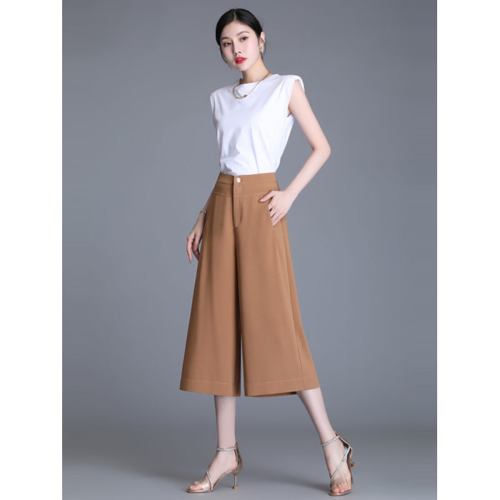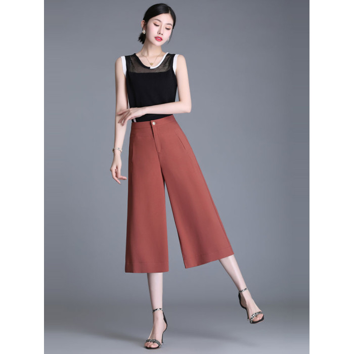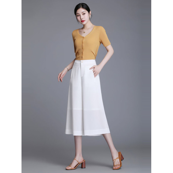 濶腿褲女七分褲夏季薄款2025爆款高腰寬松小個子寬松垂感雪紡裙褲