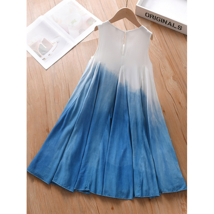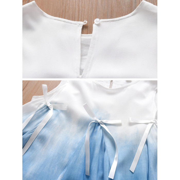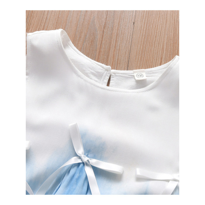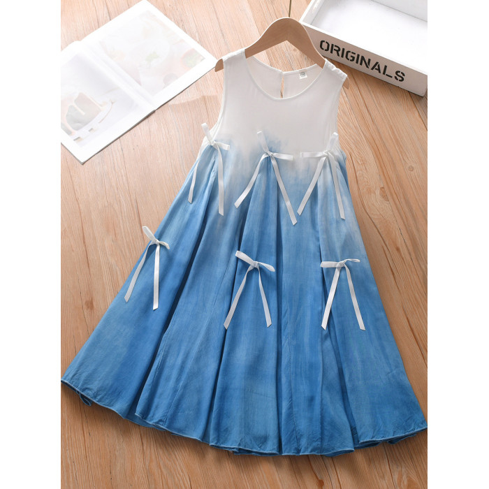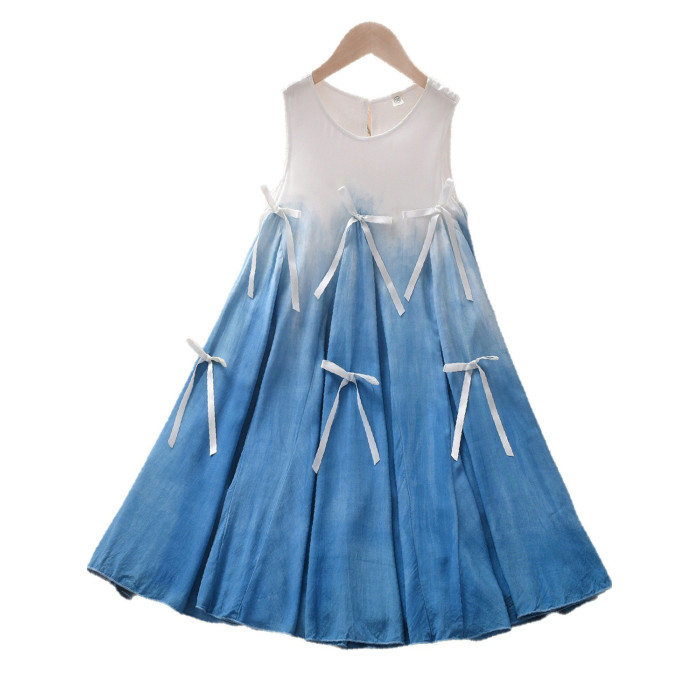 雲南古法紥染大蝴蝶結背心裙女童洋氣棉綢公主連衣裙藍染甜美