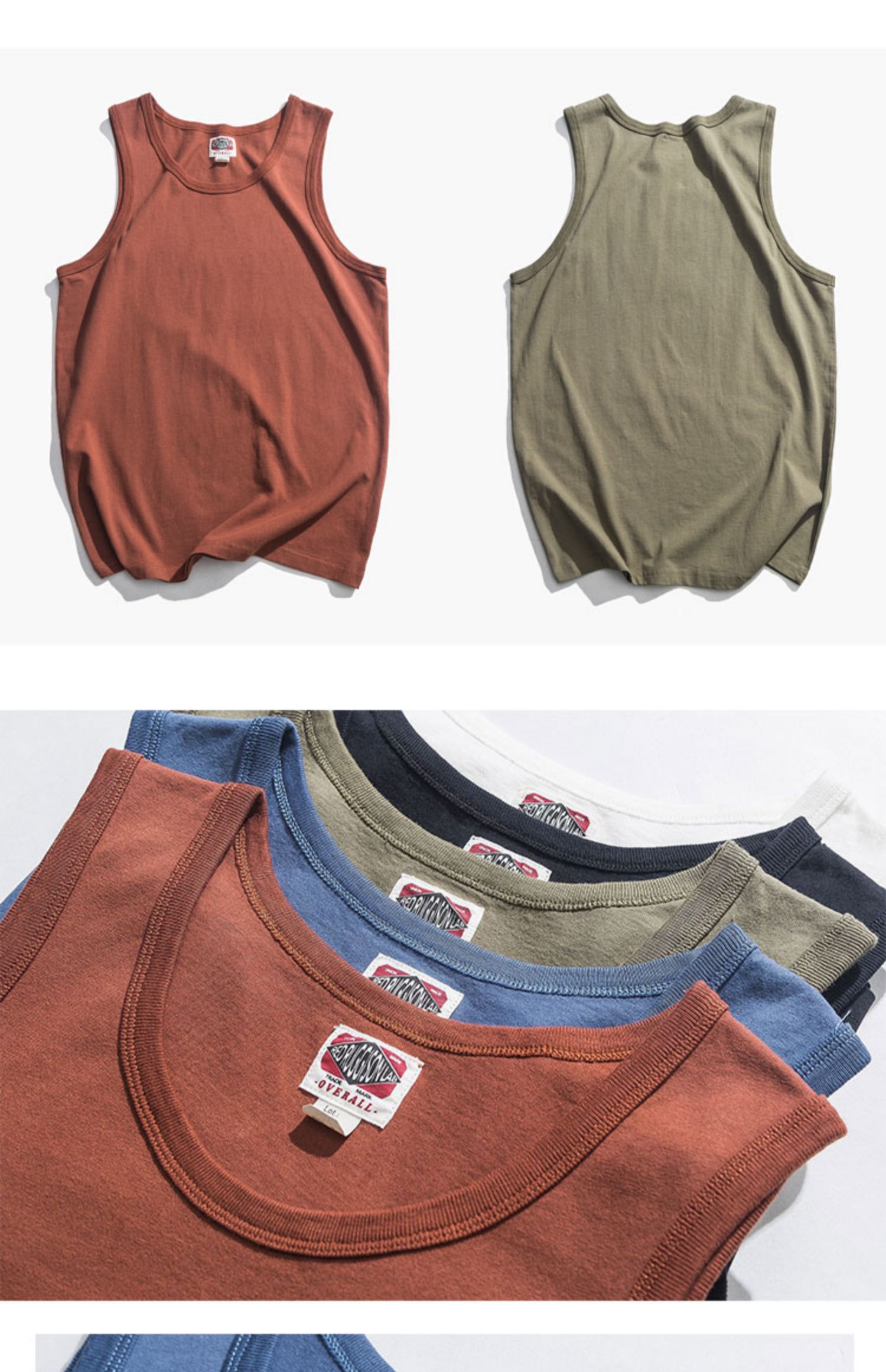 230克阿美哢嘰重磅復古做舊休閒美式背心男式工字黑白灰軍綠外穿