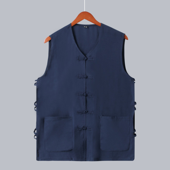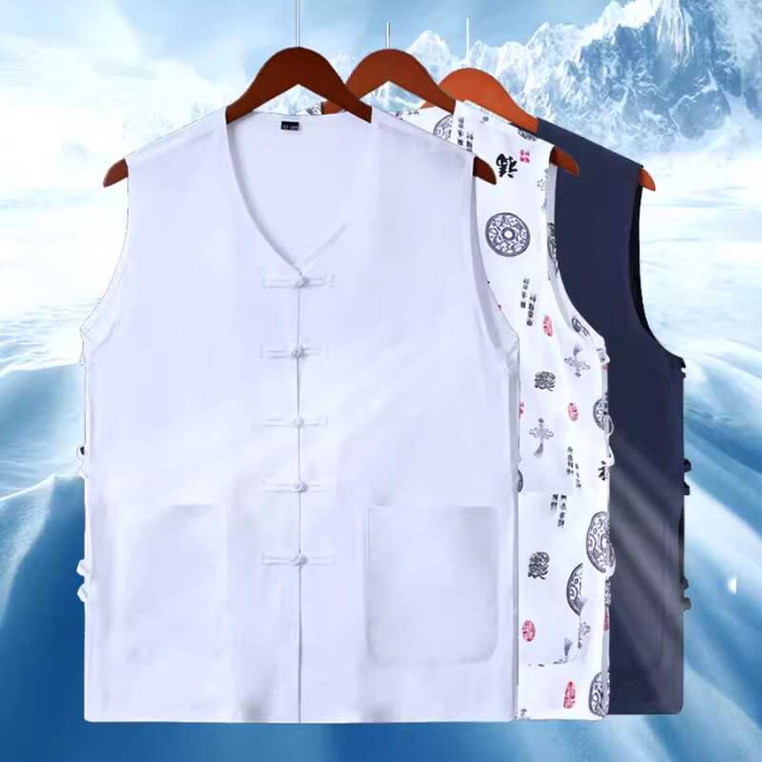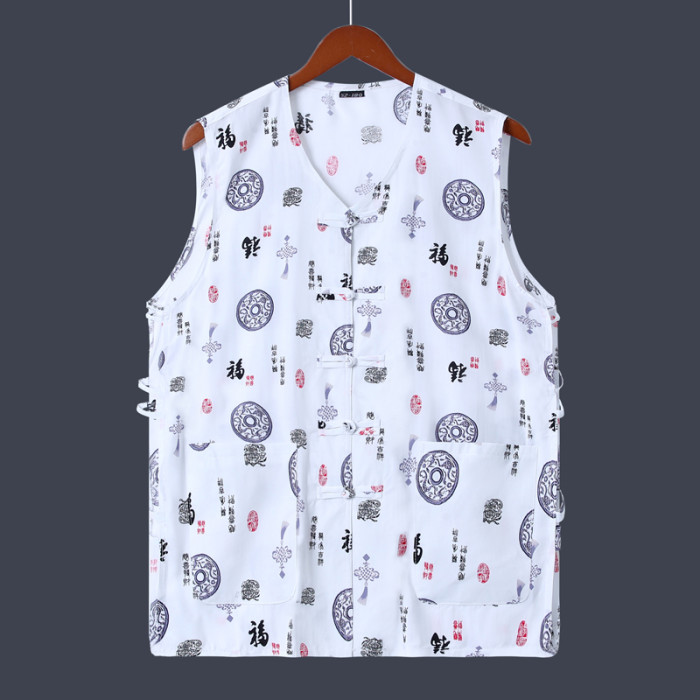 中老年夏季背心男士綿綢爺爺裝家居服大碼睡衣寬松開衫純棉綢短袖