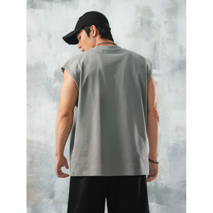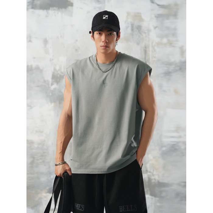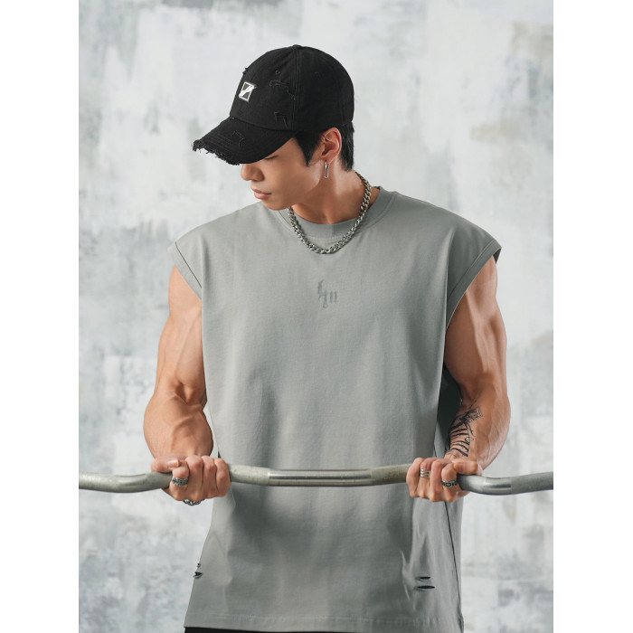 鹿家門肌肉潮牌寬松破洞坎肩背心男款健身無袖男t恤2025夏季新款