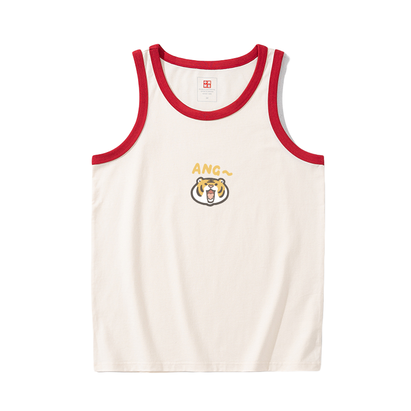 DEWELVUM 25SS 夏季新品 復古可愛趣味卡通小老虎印花背心無袖t恤