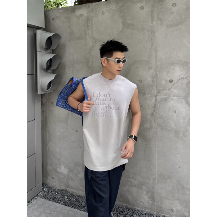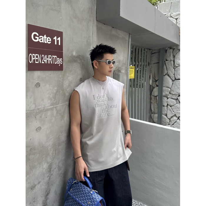 2025夏季新款男士無袖T恤男款背心潮流字母印花休閒百搭透氣 坎肩
