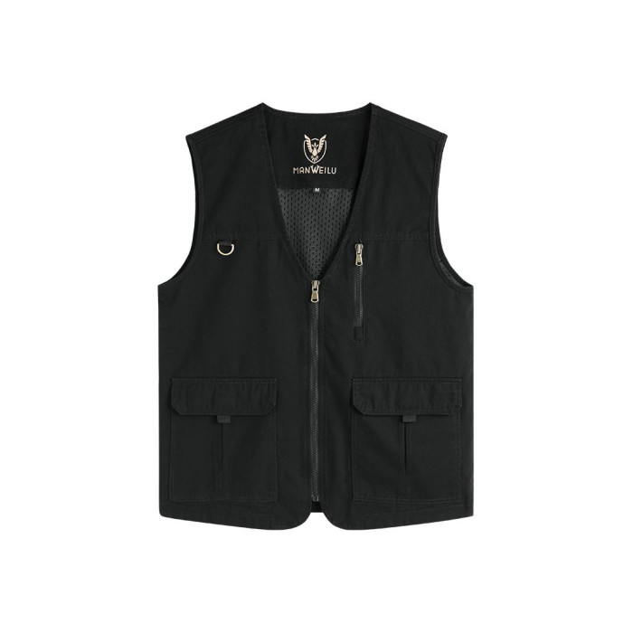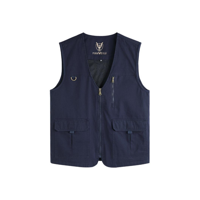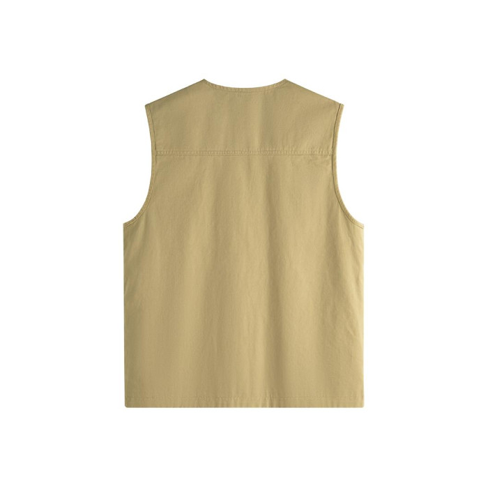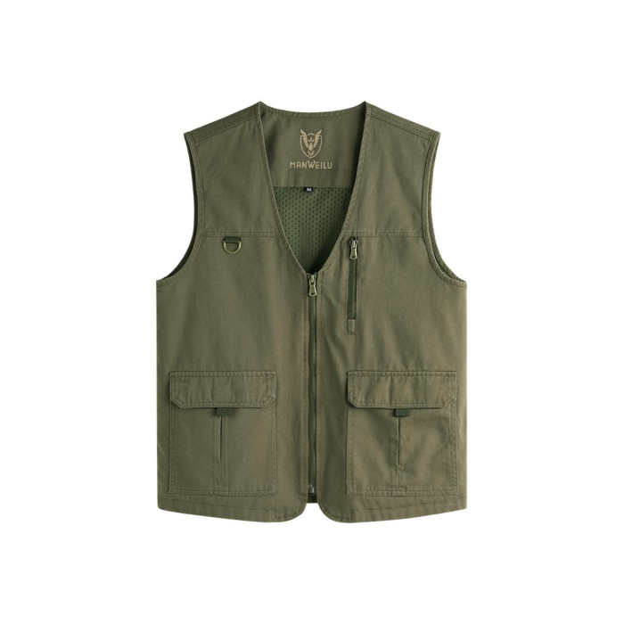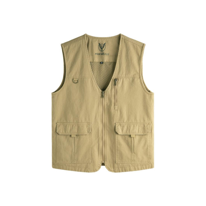 男士春秋季無袖馬甲純棉V領多口袋中年休閒潮牌釣魚寬松大碼馬夾