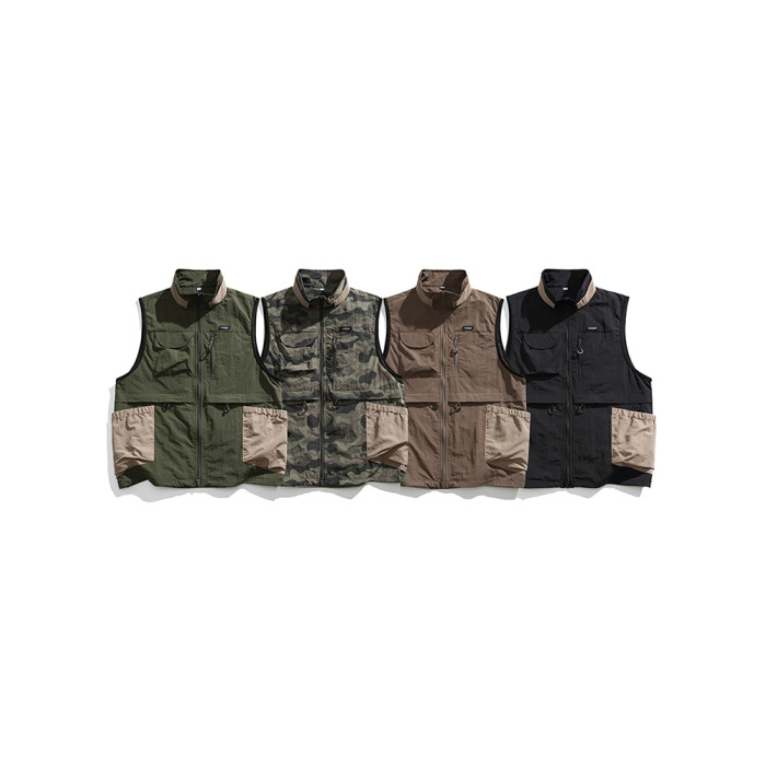 LAZY DAY原創男裝山系戶外防水立體大口袋工裝馬甲男休閒寬松外套