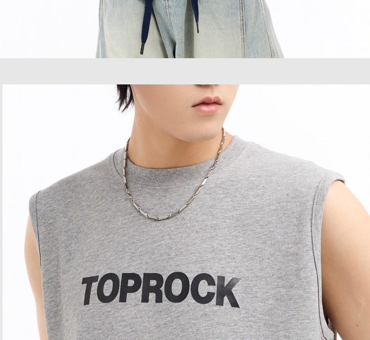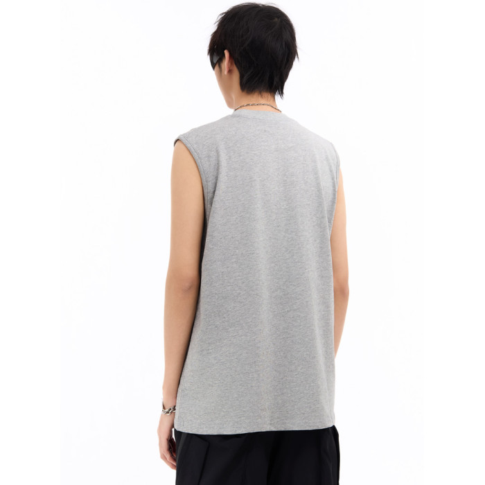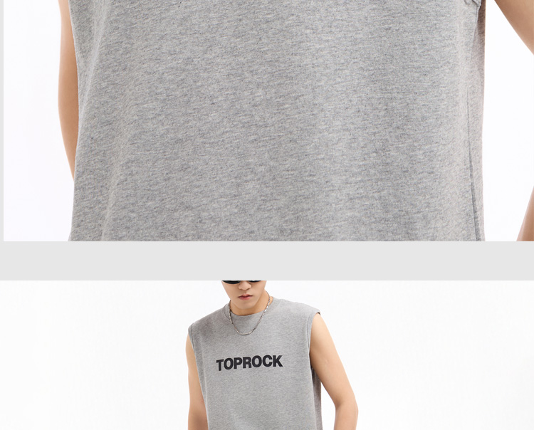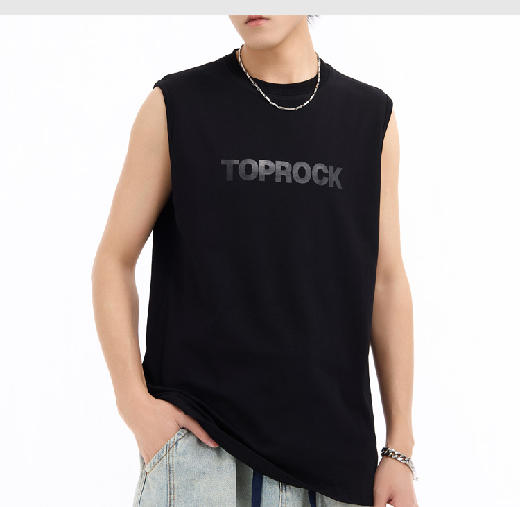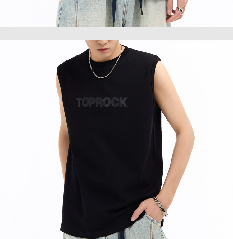 TOPROCK純棉寬松男坎肩重磅無袖T恤運動背心夏季小袖口潮牌結毛