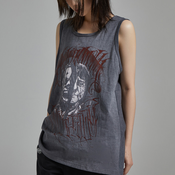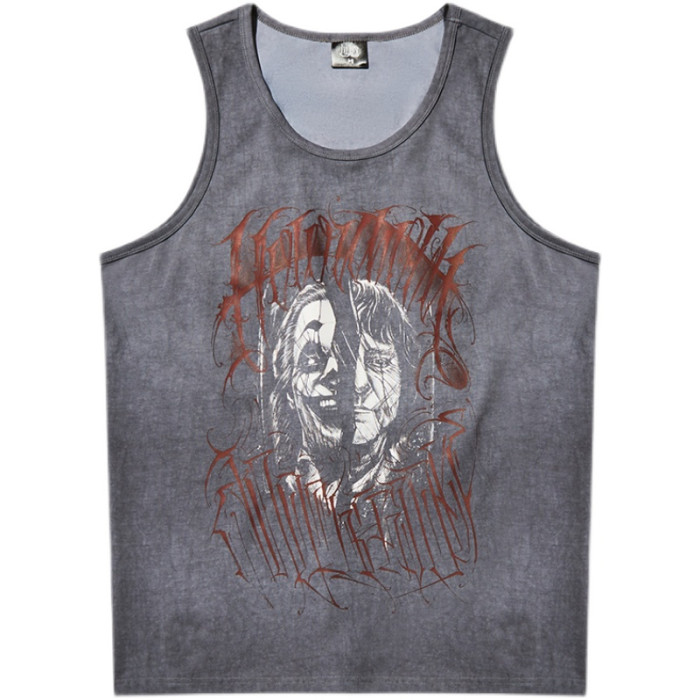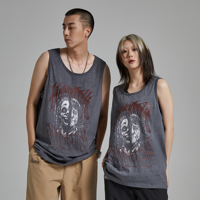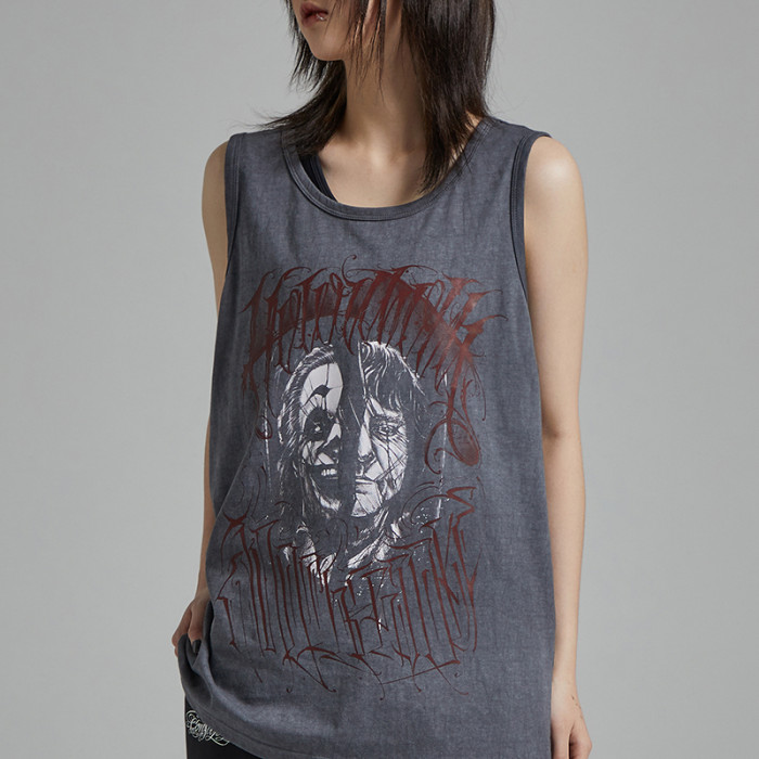 LWA街頭原創潮牌 奇卡諾花體字匪幫美式寬松紥染洗水做舊小醜背心