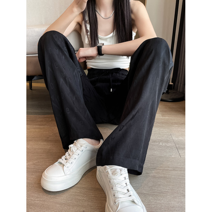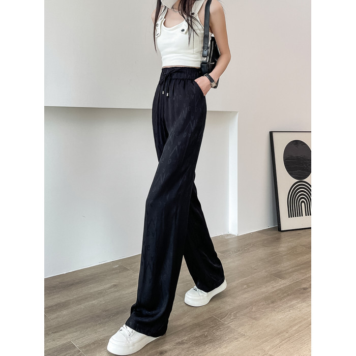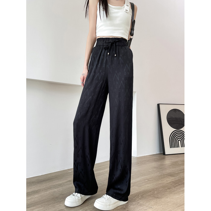 醋酸濶腿褲女夏季薄款2025年高腰垂感直筒提花緞面窄版休閒冰絲褲