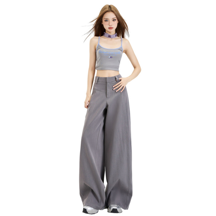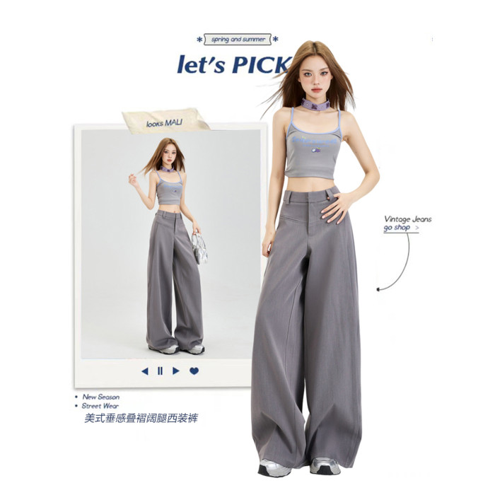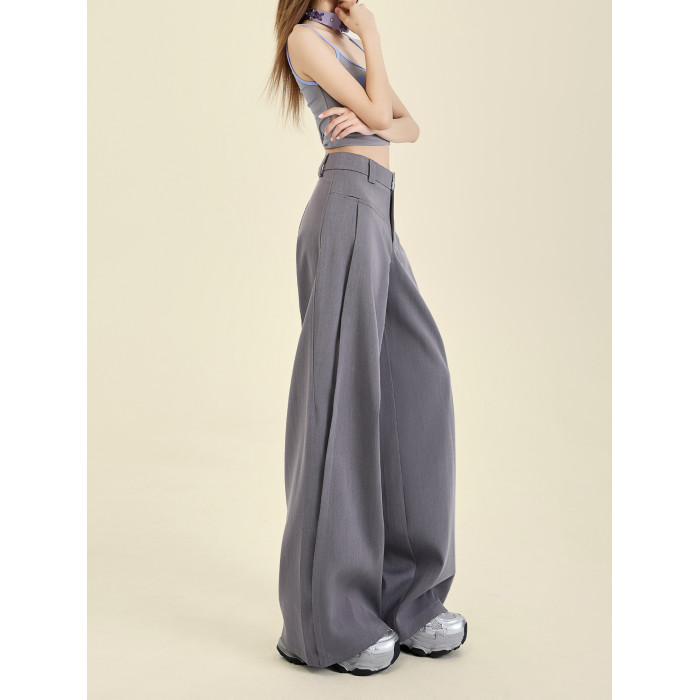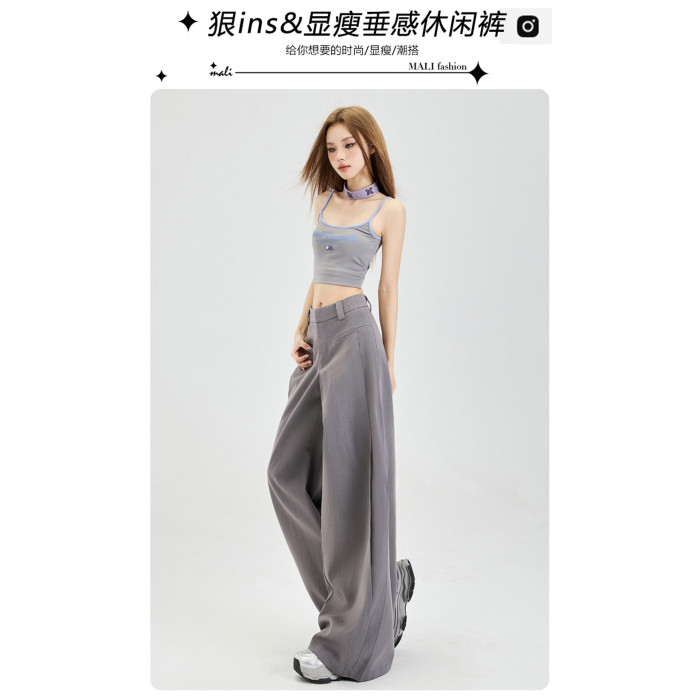 灰色西裝褲女2025年新款夏季高腰寬松慵懶風垂墜感直筒休閒濶腿褲