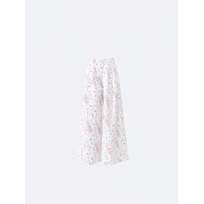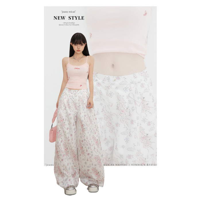 白色碎花濶腿褲女2025年新款夏季高腰寬松顯瘦垂感直筒休閒松弛感