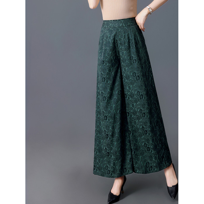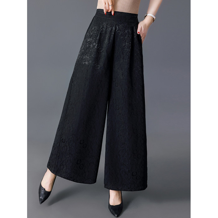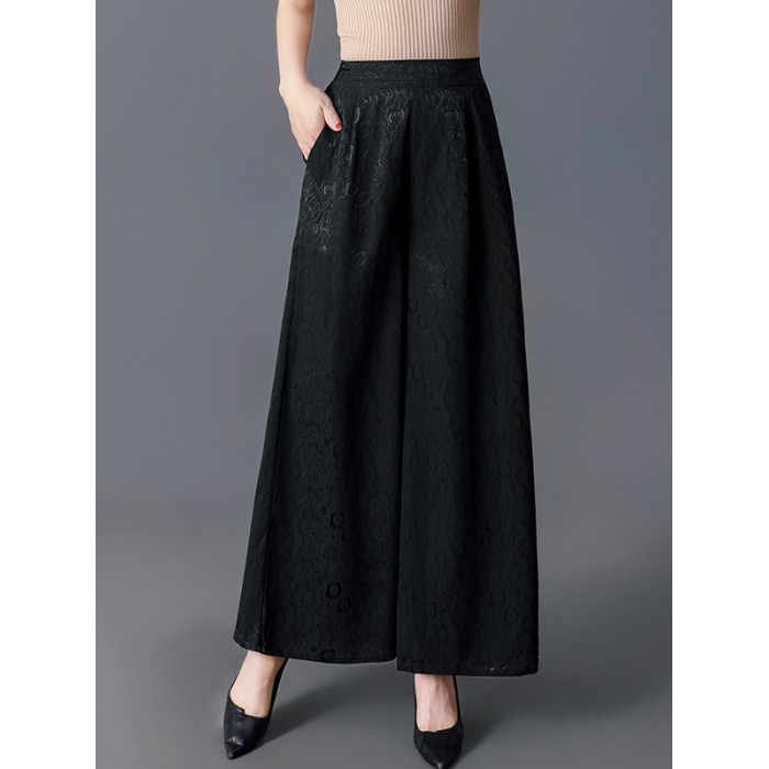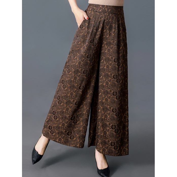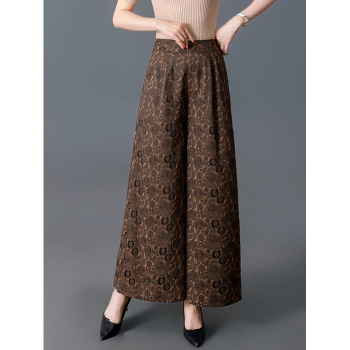 中老年媽媽香雲紗濶腿褲女2025夏季新款加肥加大真絲花紋休閒褲子