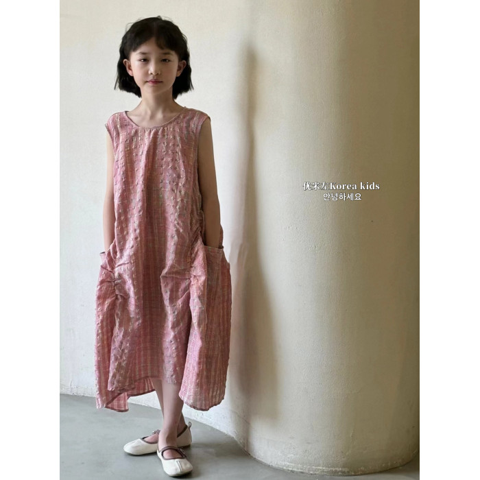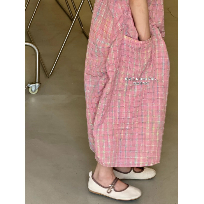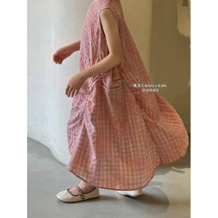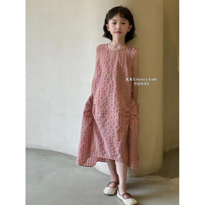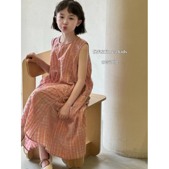 韓國童裝女童連衣裙2025夏季新款兒童洋氣格子無袖背心裙子公主裙