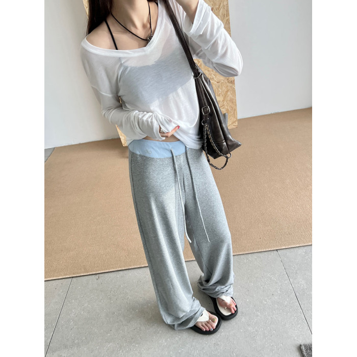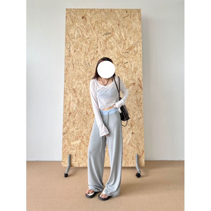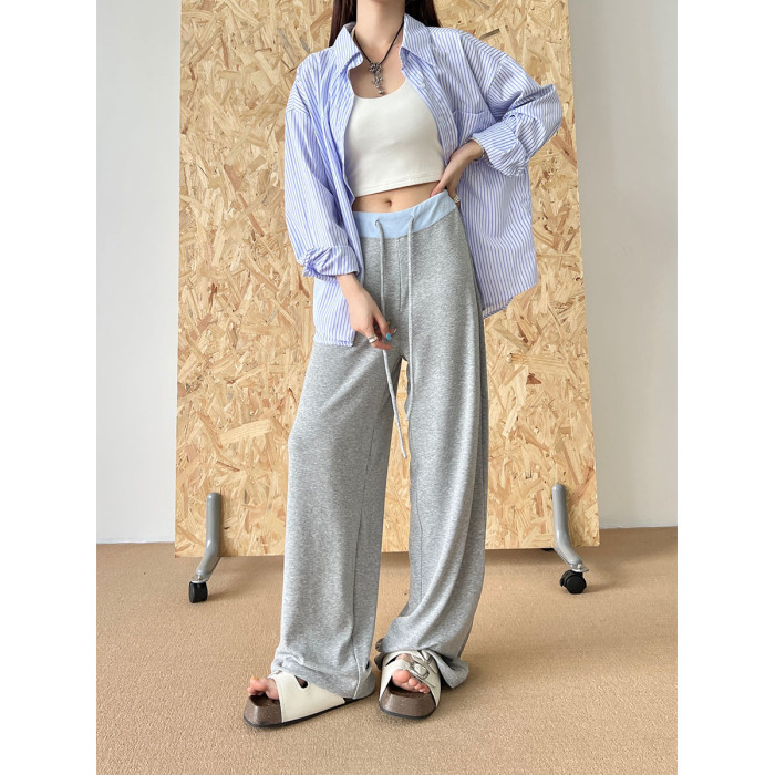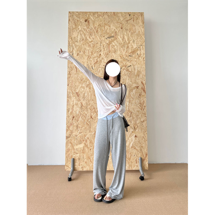fuccykee美式濶腿褲女夏季新款薄款高腰垂感寬松顯瘦慵懶風休閒褲