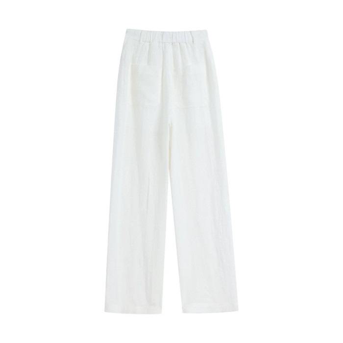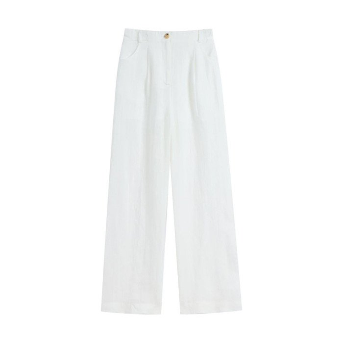 2025夏季新款高腰顯瘦濶腿褲女西裝褲垂感氣質百搭休閒褲白色