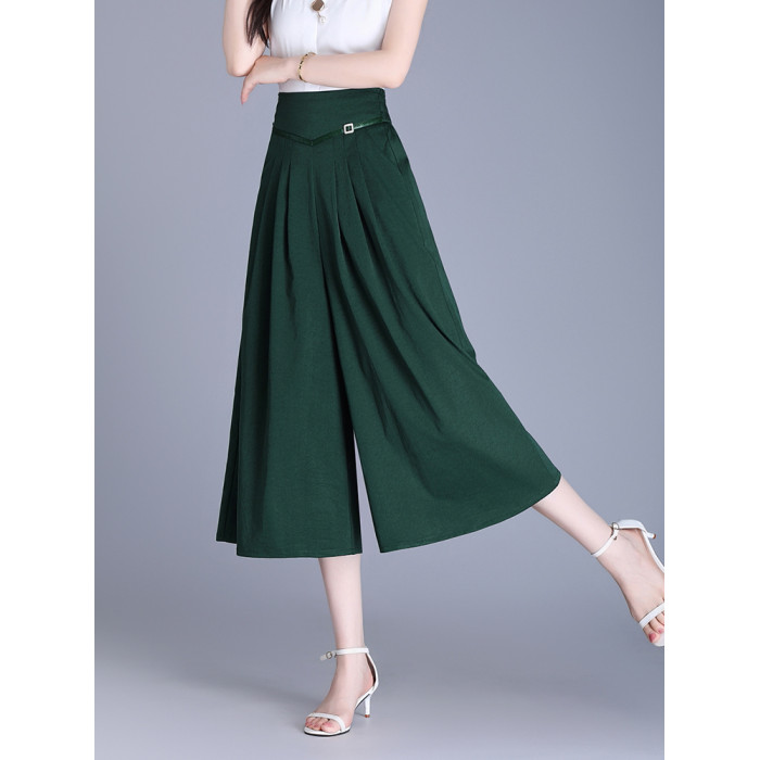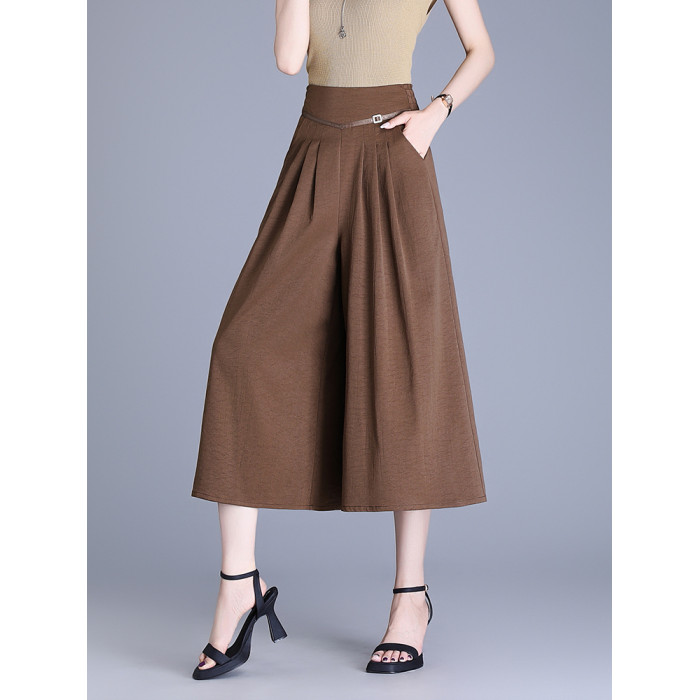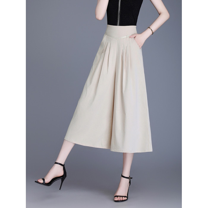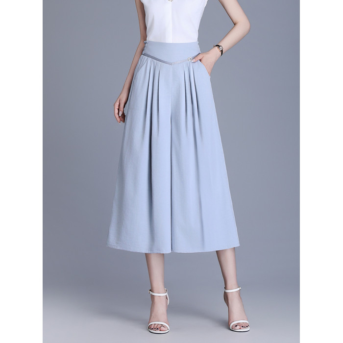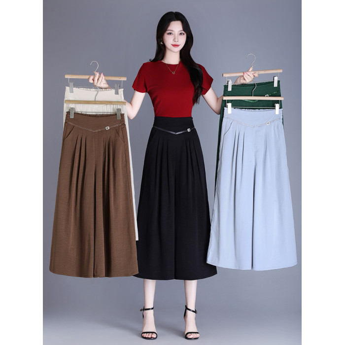 冰絲棉濶腿褲女夏薄款高腰寬松八分褲小個子媽媽褲子垂感大腳裙褲