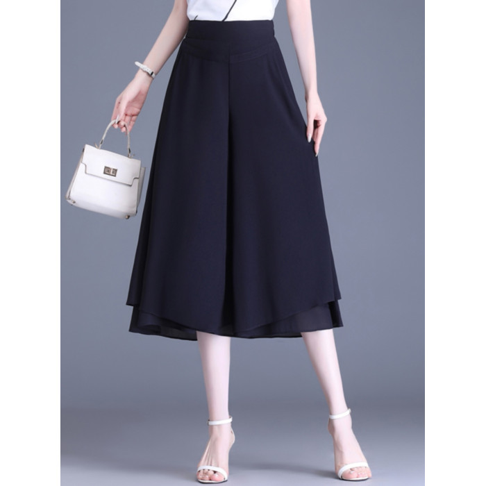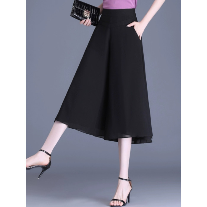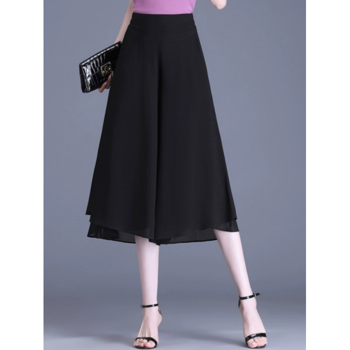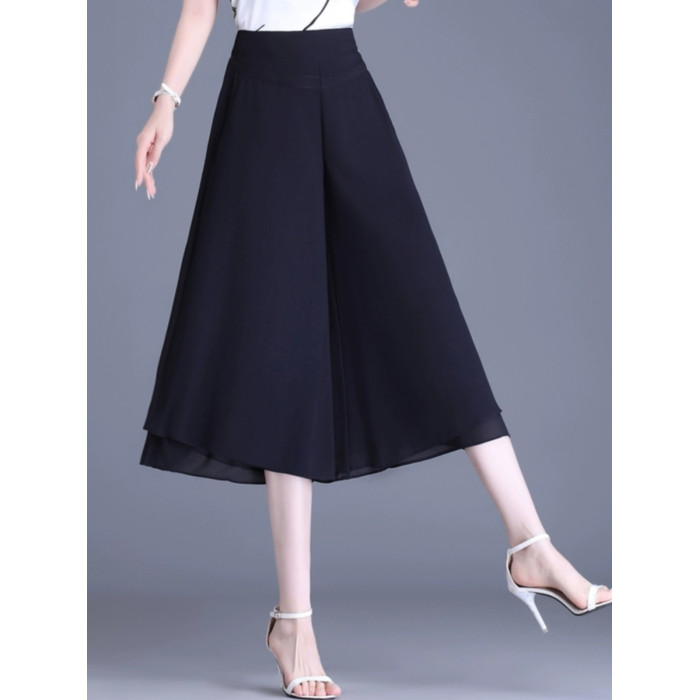 雪紡七分褲濶腿褲女夏2025春夏季新款高腰寬松休閒褲垂感裙褲薄款