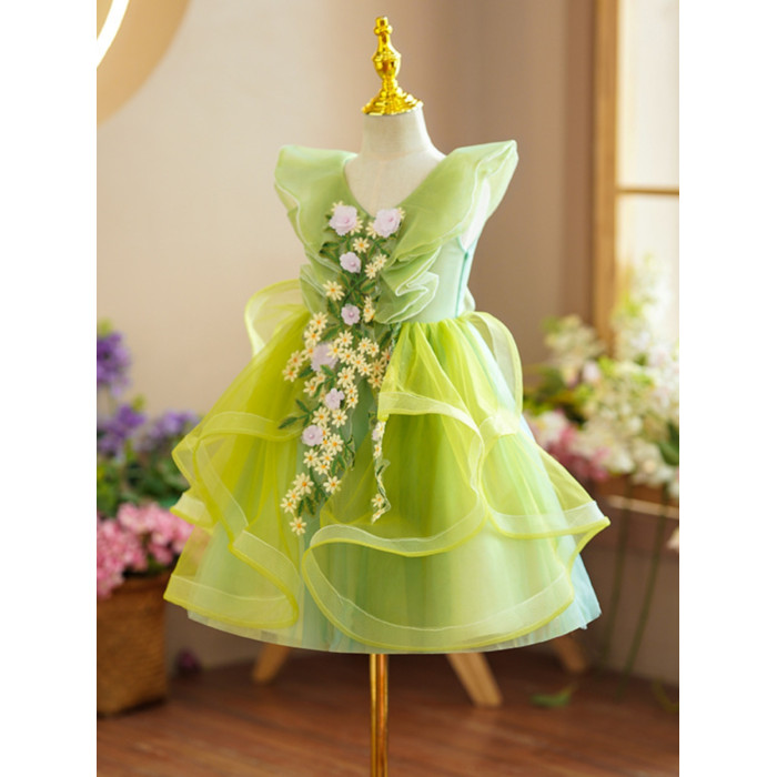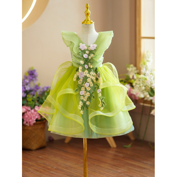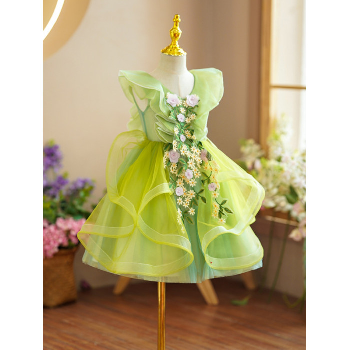 兒童演出服蓬蓬裙幼兒園表演服女童綠色森系公主裙禮服可愛舞蹈服
