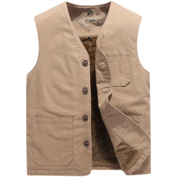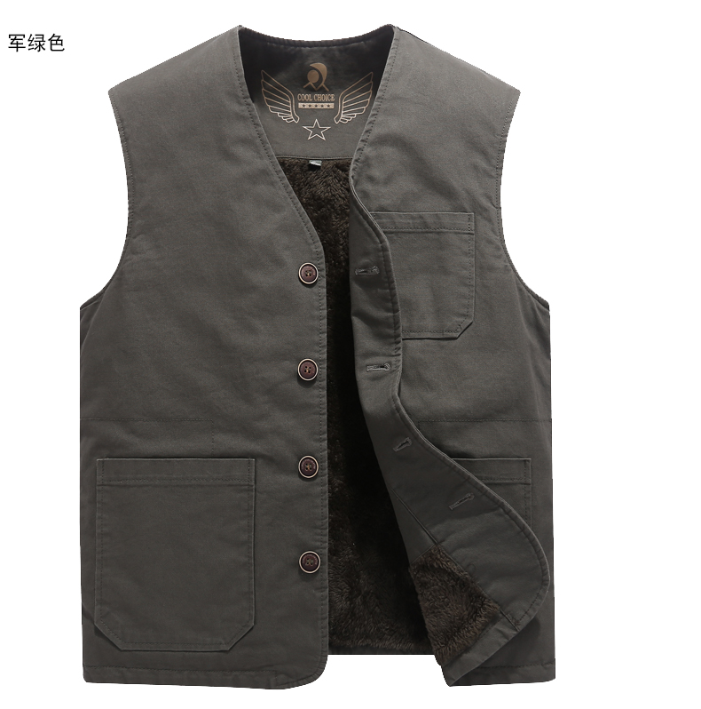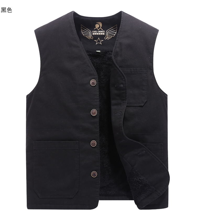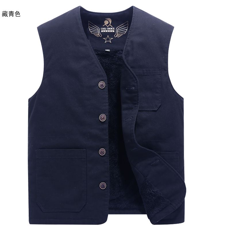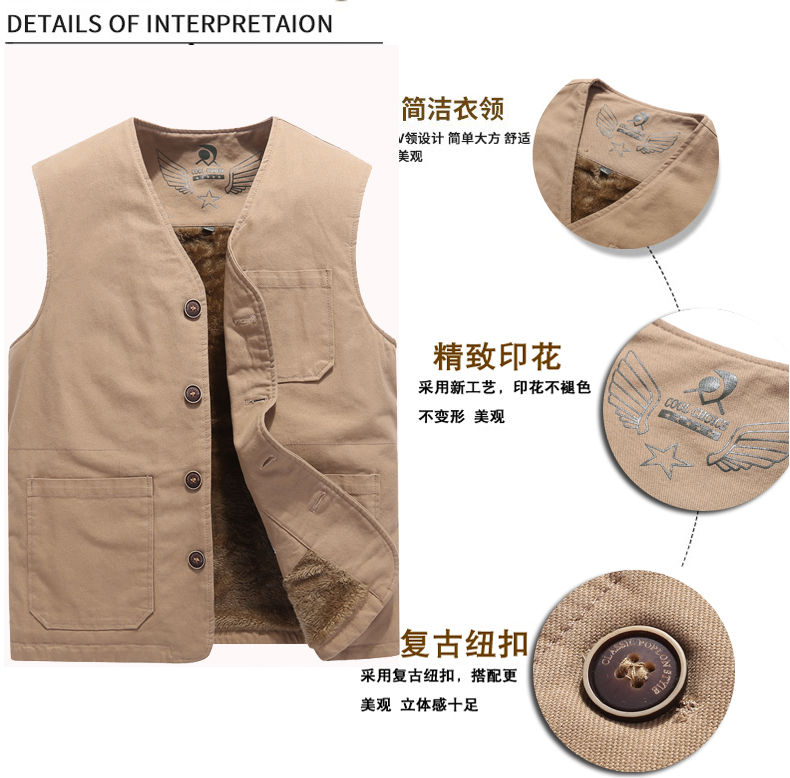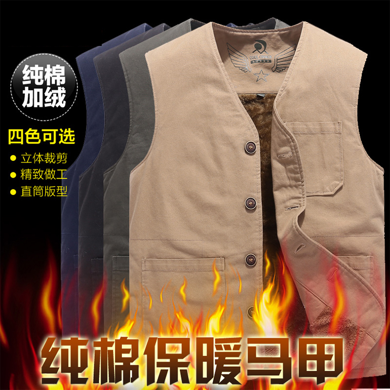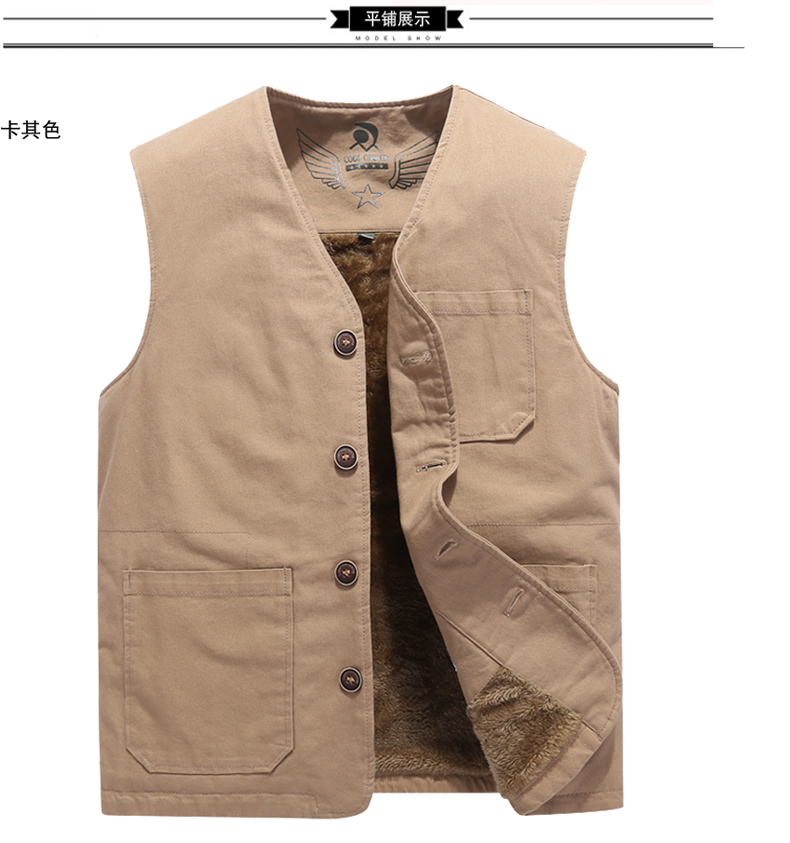 馬夾男新款純棉坎肩V領多口袋加絨大碼中老年保暖休閒馬甲爸爸裝