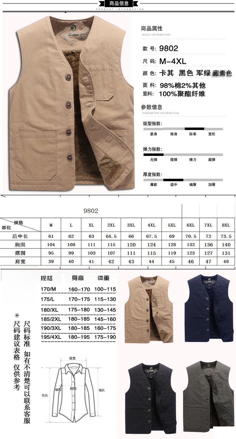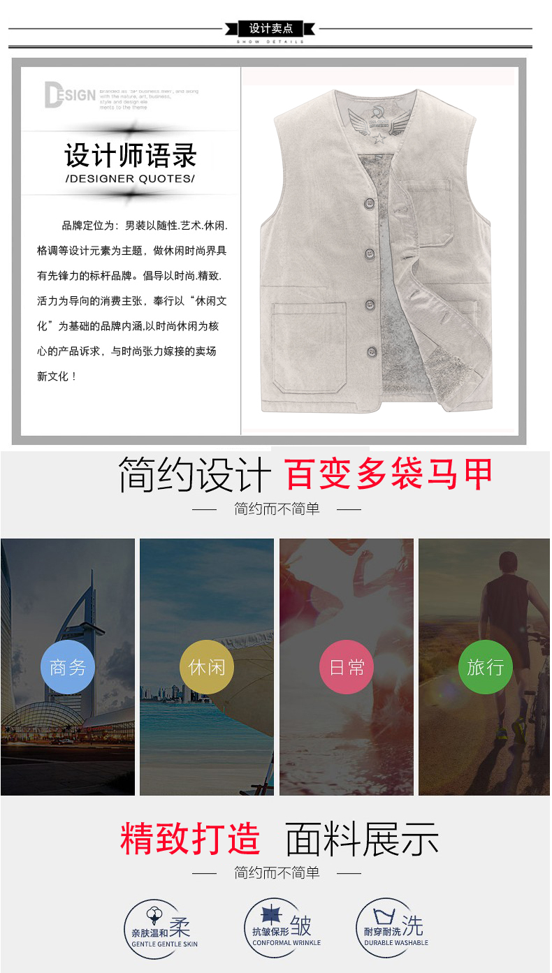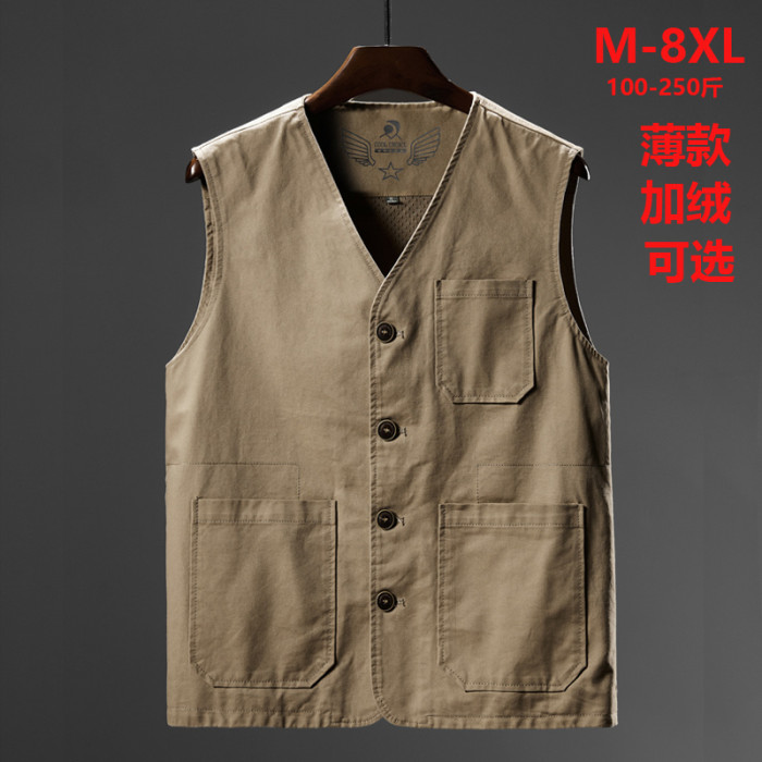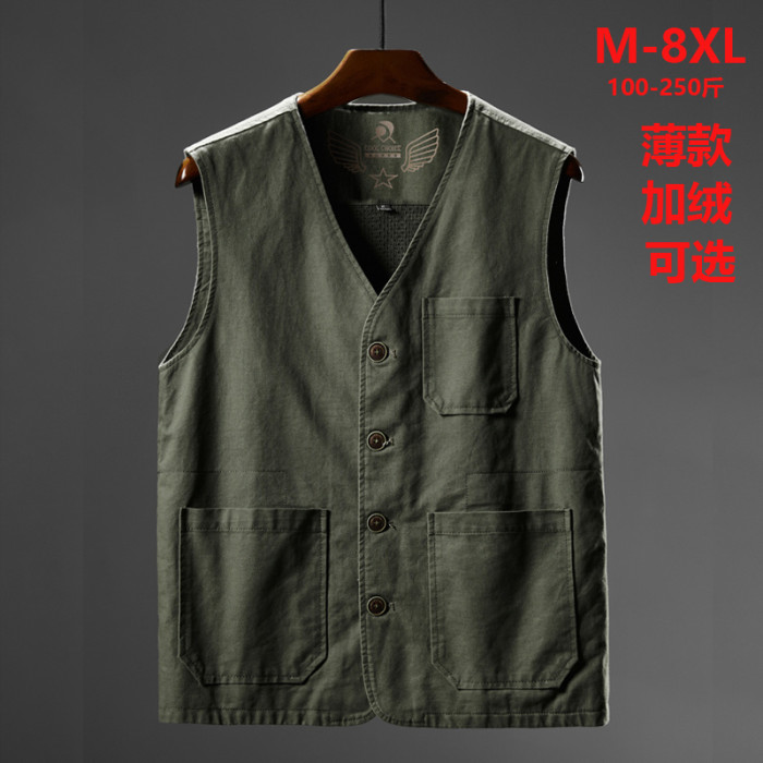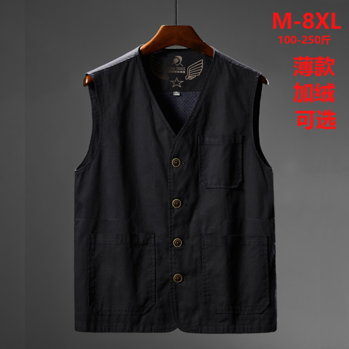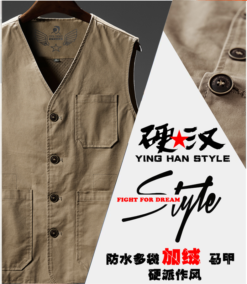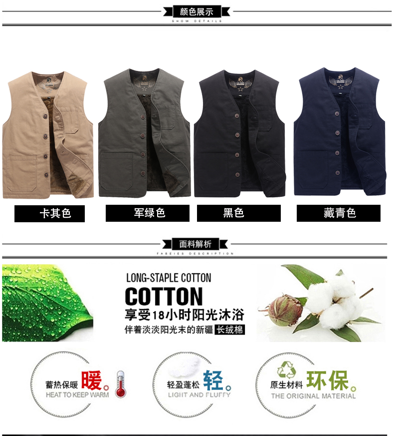 馬夾男新款純棉坎肩V領多口袋加絨大碼中老年保暖休閒馬甲爸爸裝