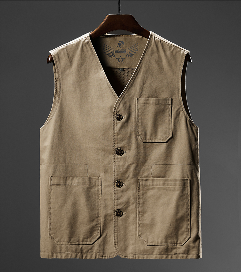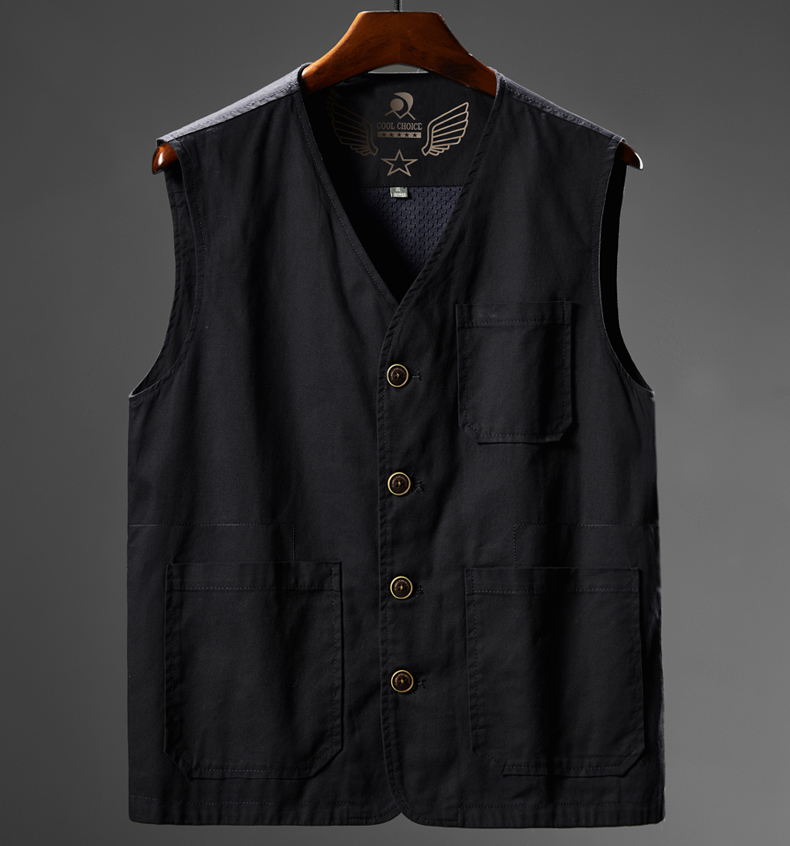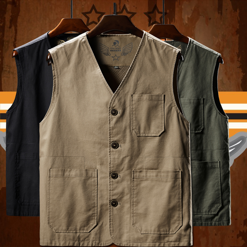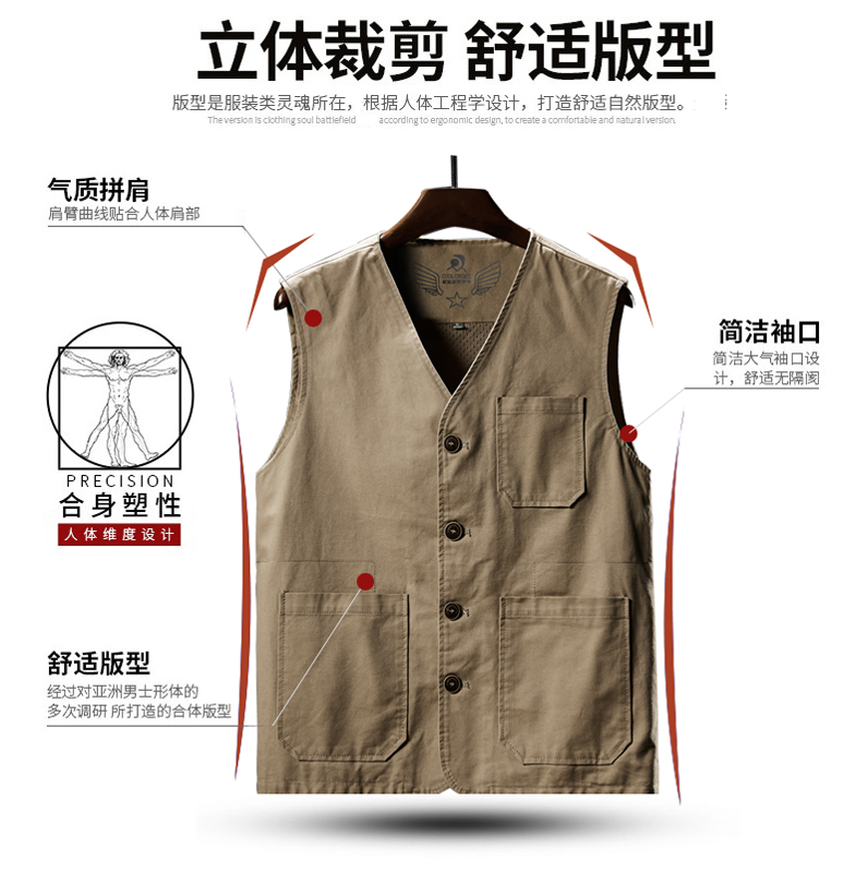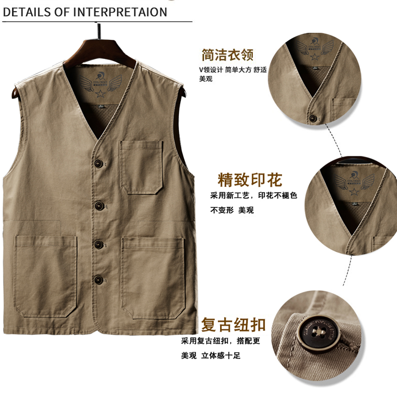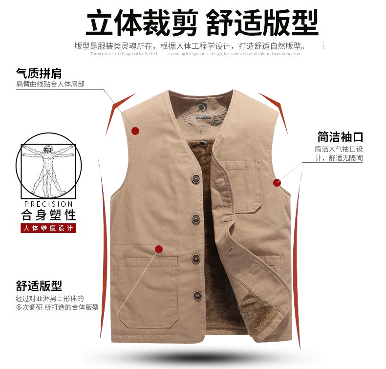 馬夾男新款純棉坎肩V領多口袋加絨大碼中老年保暖休閒馬甲爸爸裝