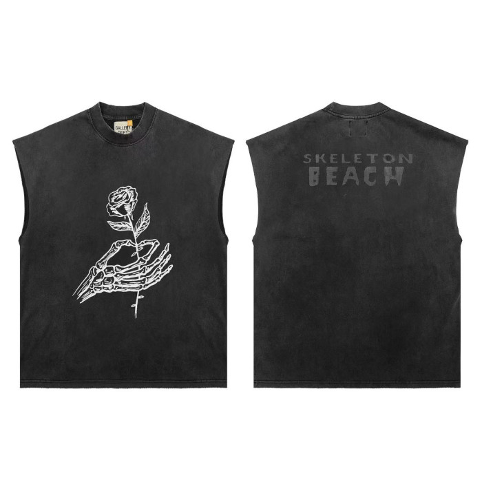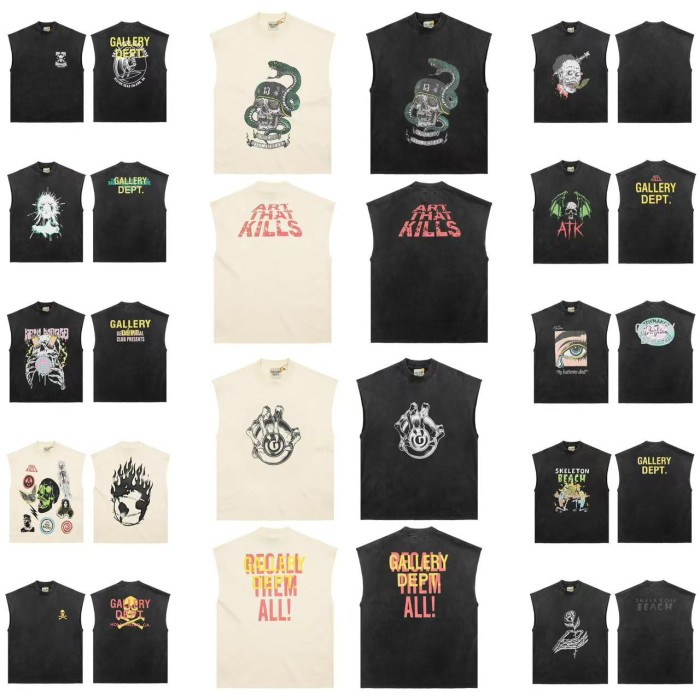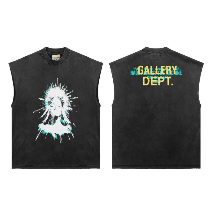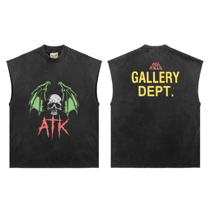 Gallery Dept高街百搭fog復古水洗做舊男無袖背心砍肩短袖情侶潮
