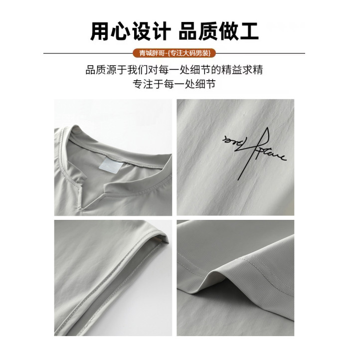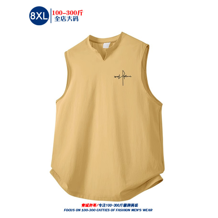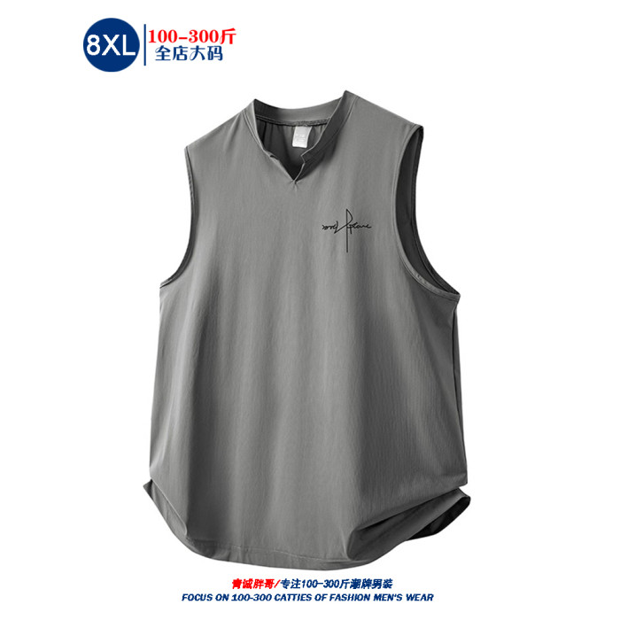 青誠胖哥大碼冰絲背心男夏季寬松休閒加肥加大V領無袖T恤打底衫潮